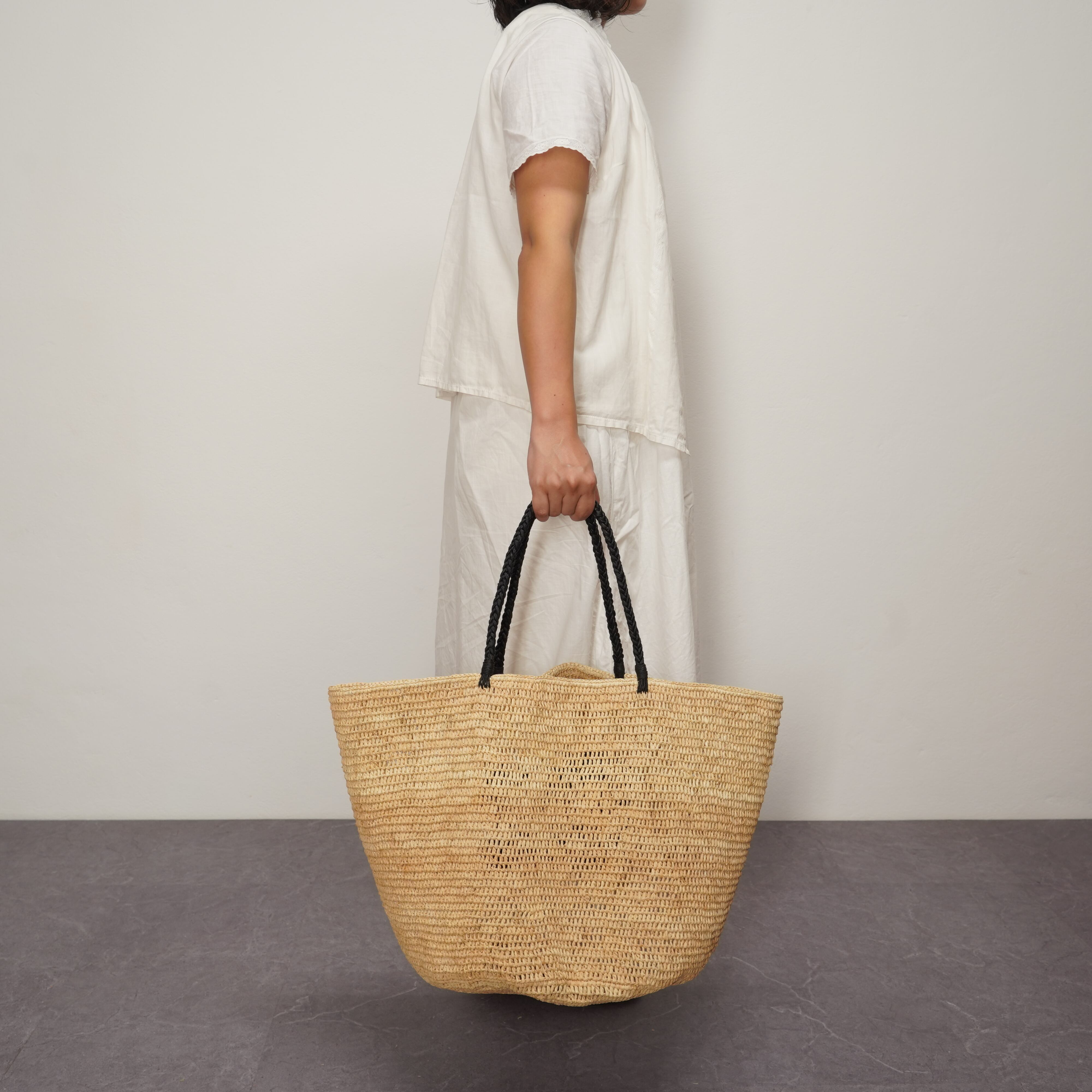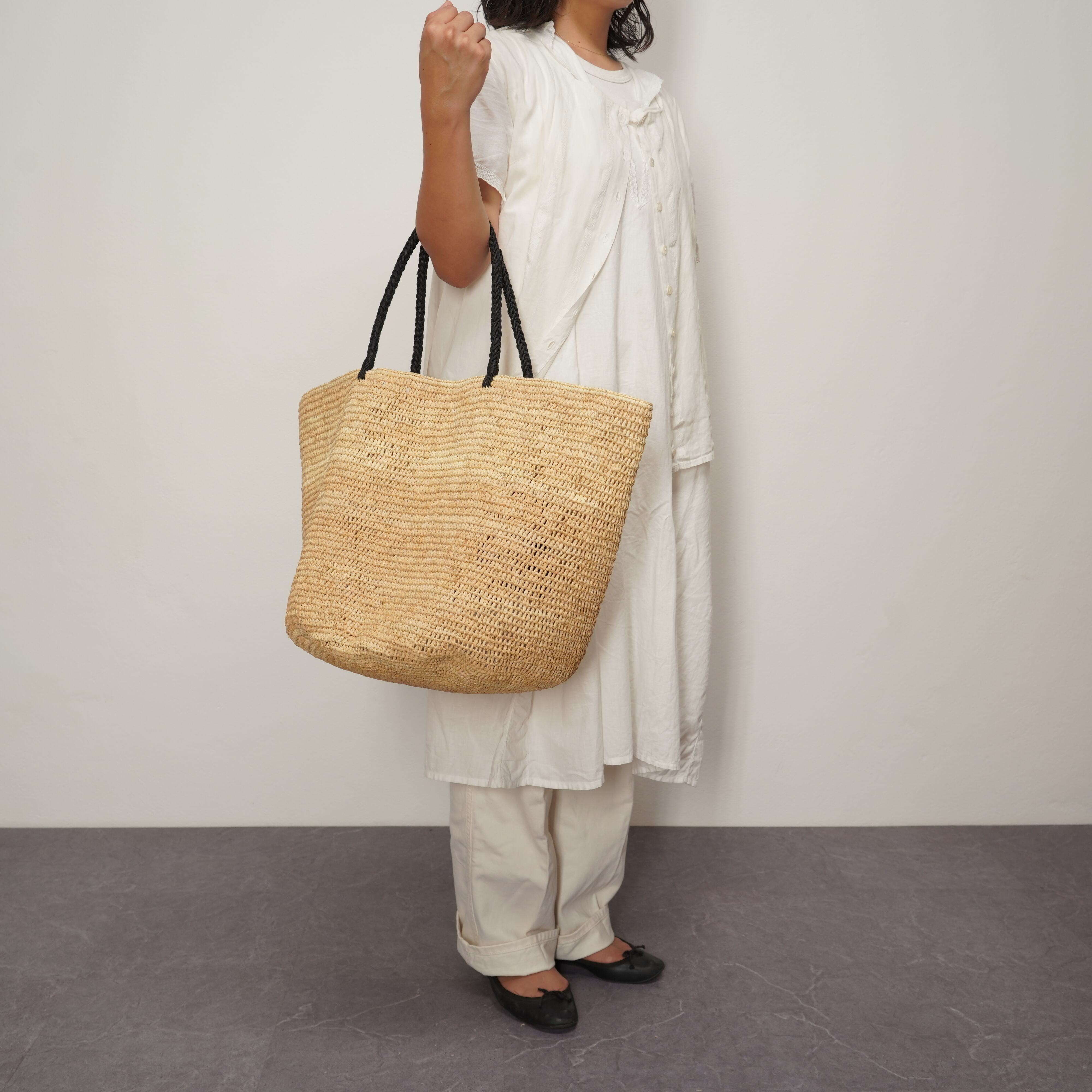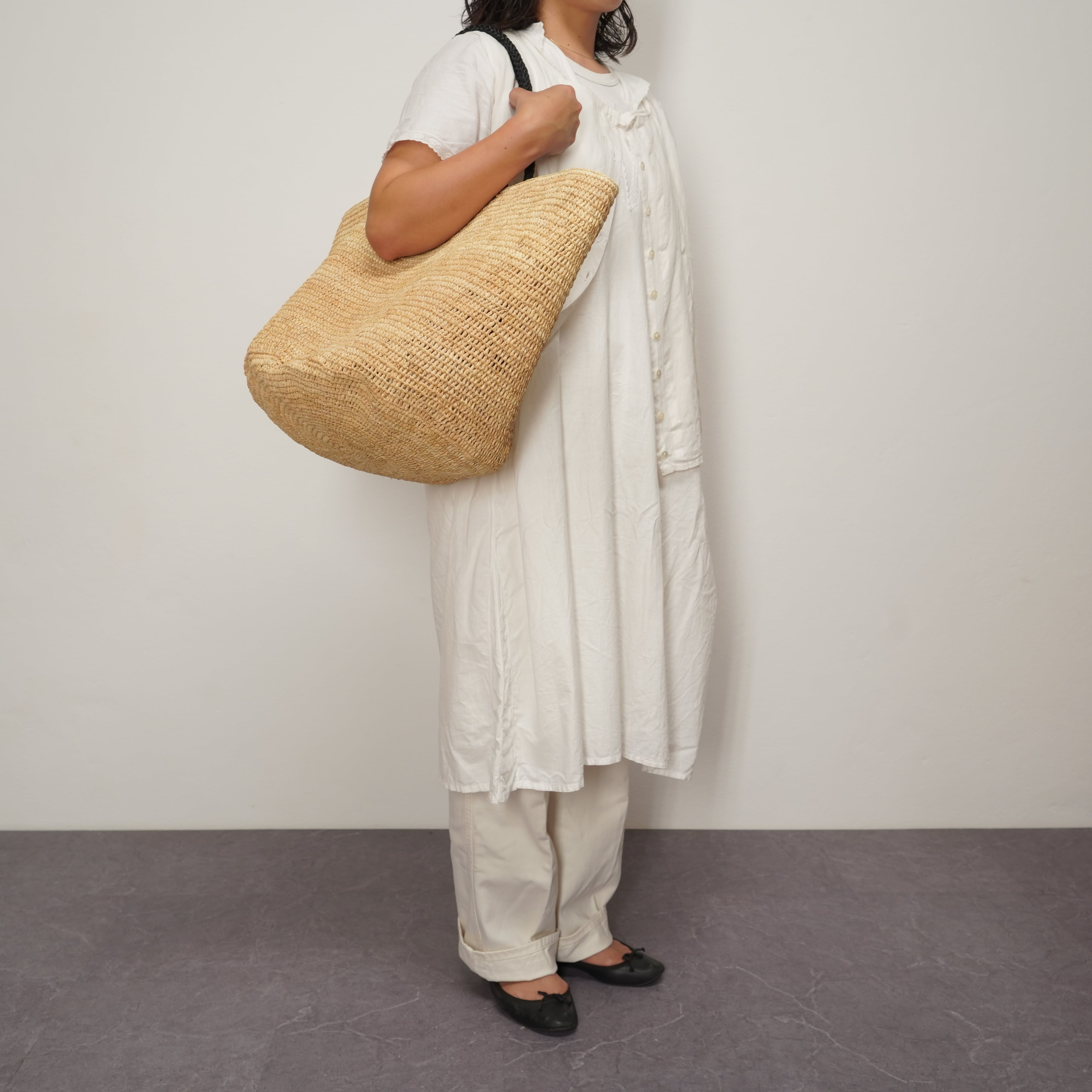 海辺で過ごす時間をイメージしてデザインした、軽やかで大容量のバッグです。たっぷりとしたサイズ感ながら、ラフィア素材ならではの軽さと、毎日気兼ねなく使える丈夫さを兼ね備えています。