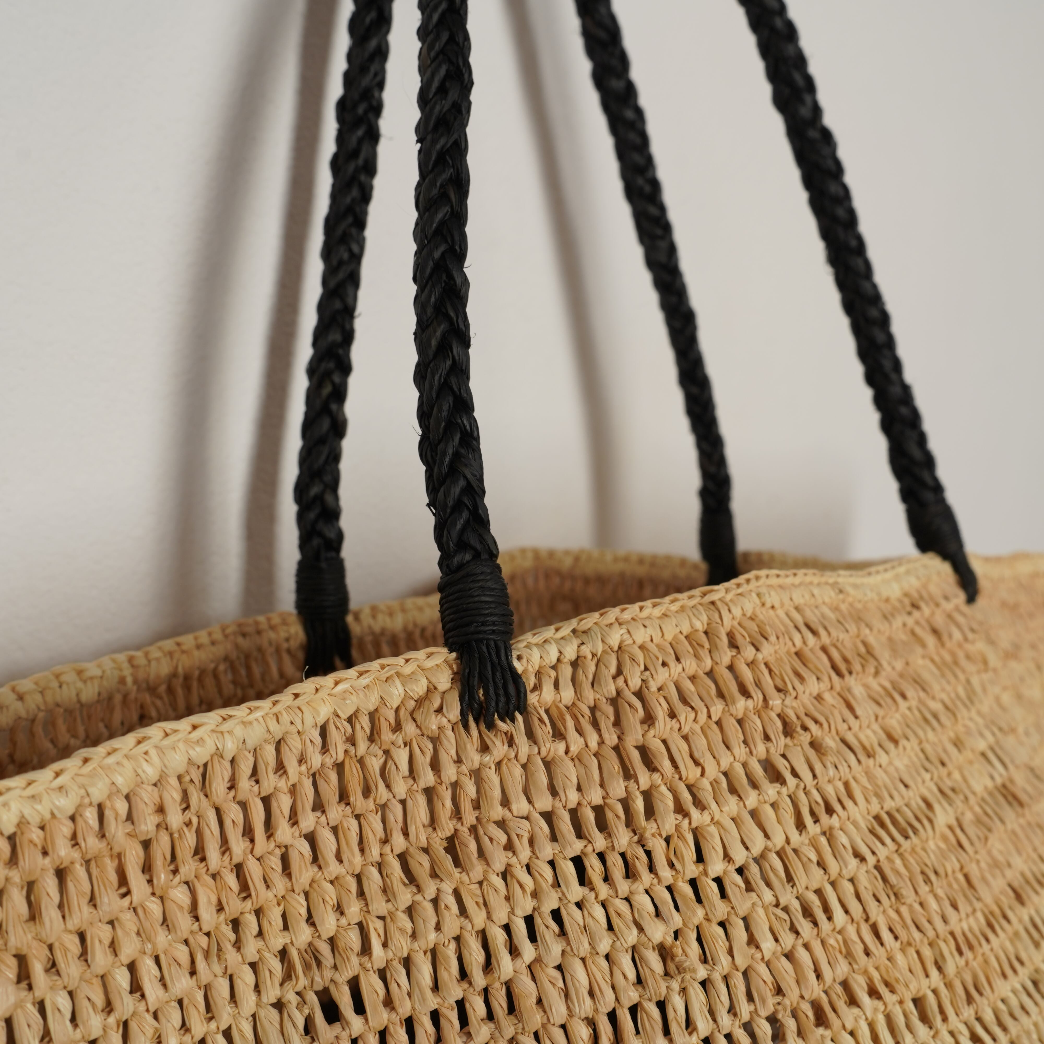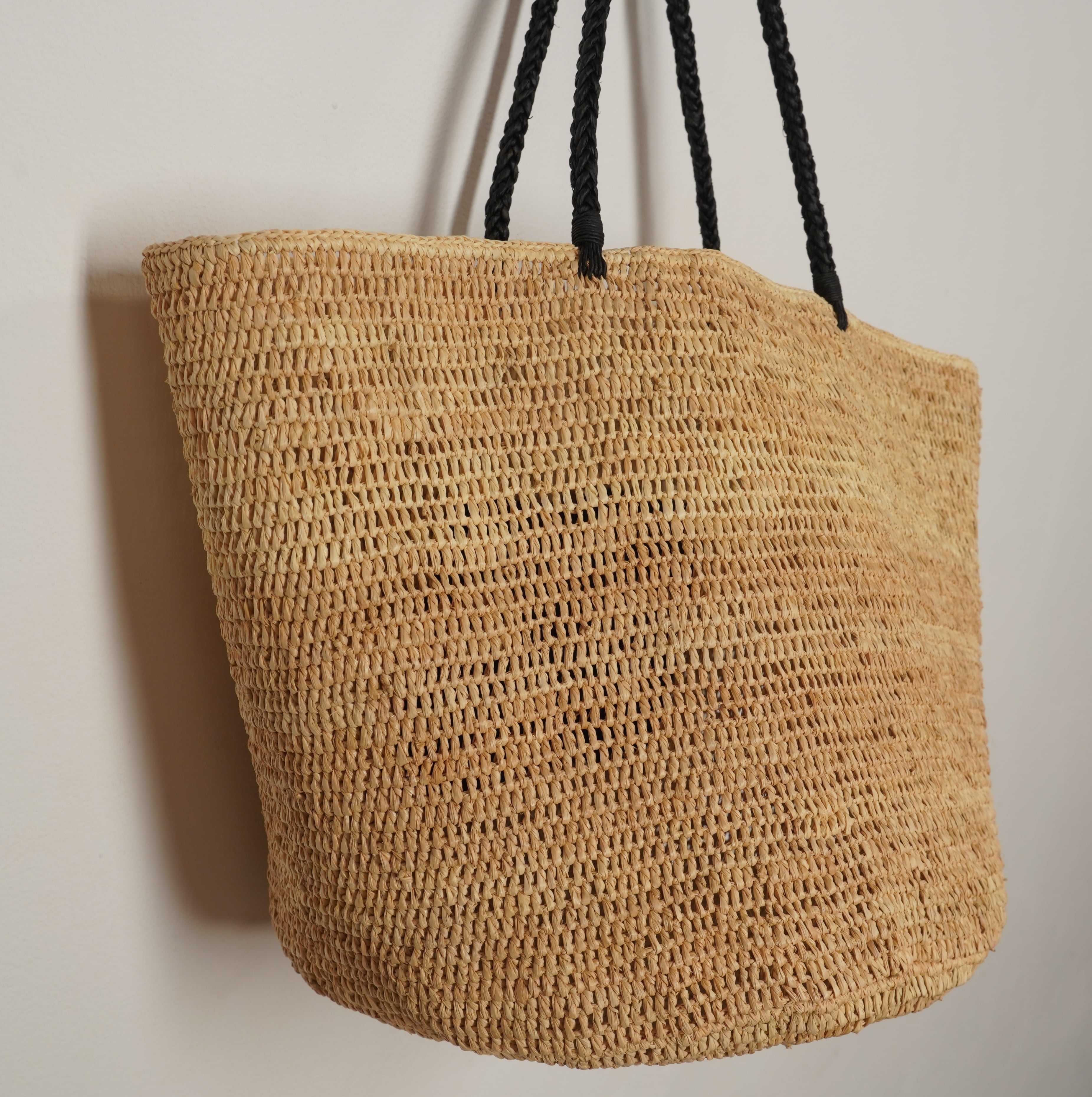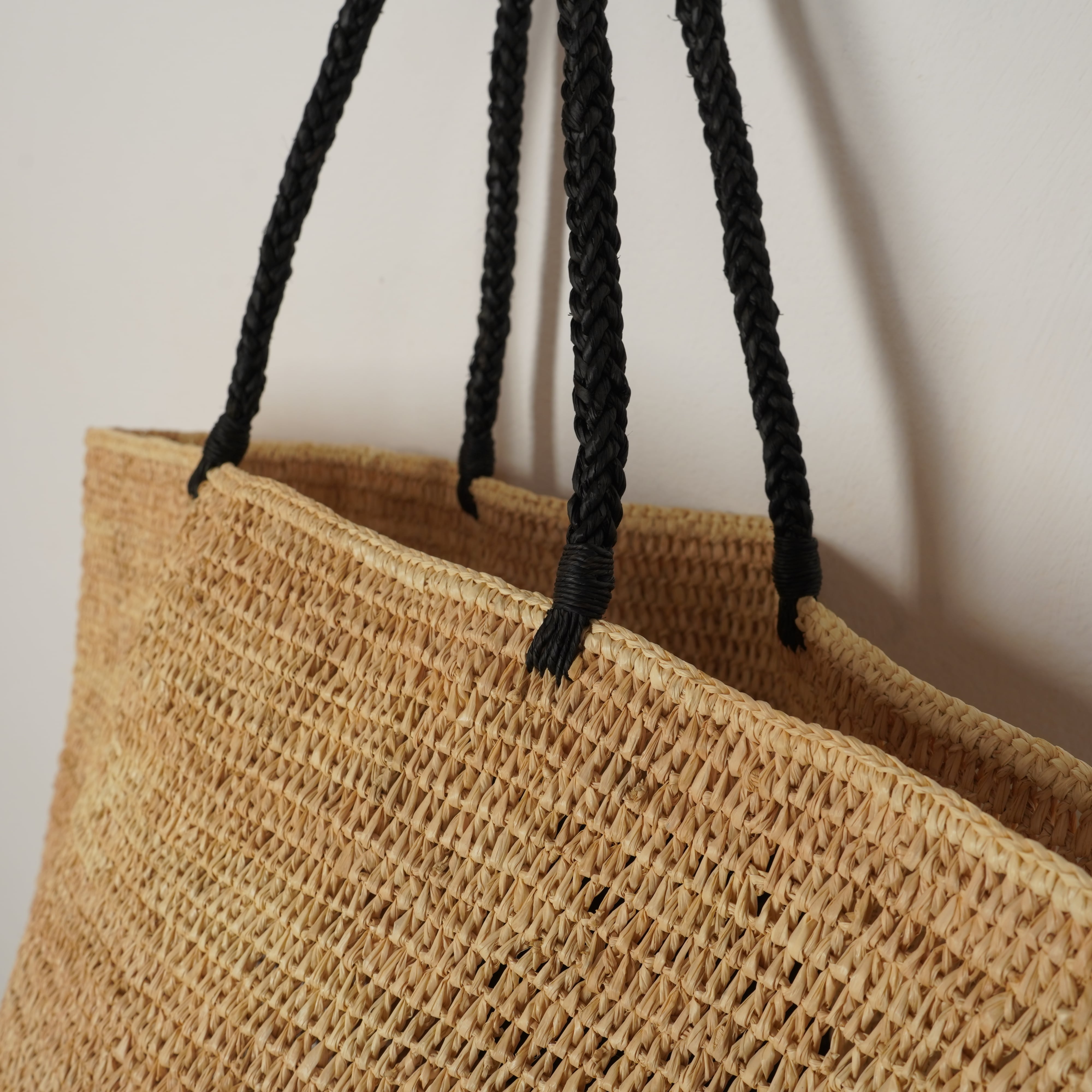 海辺で過ごす時間をイメージしてデザインした、軽やかで大容量のバッグです。たっぷりとしたサイズ感ながら、ラフィア素材ならではの軽さと、毎日気兼ねなく使える丈夫さを兼ね備えています。