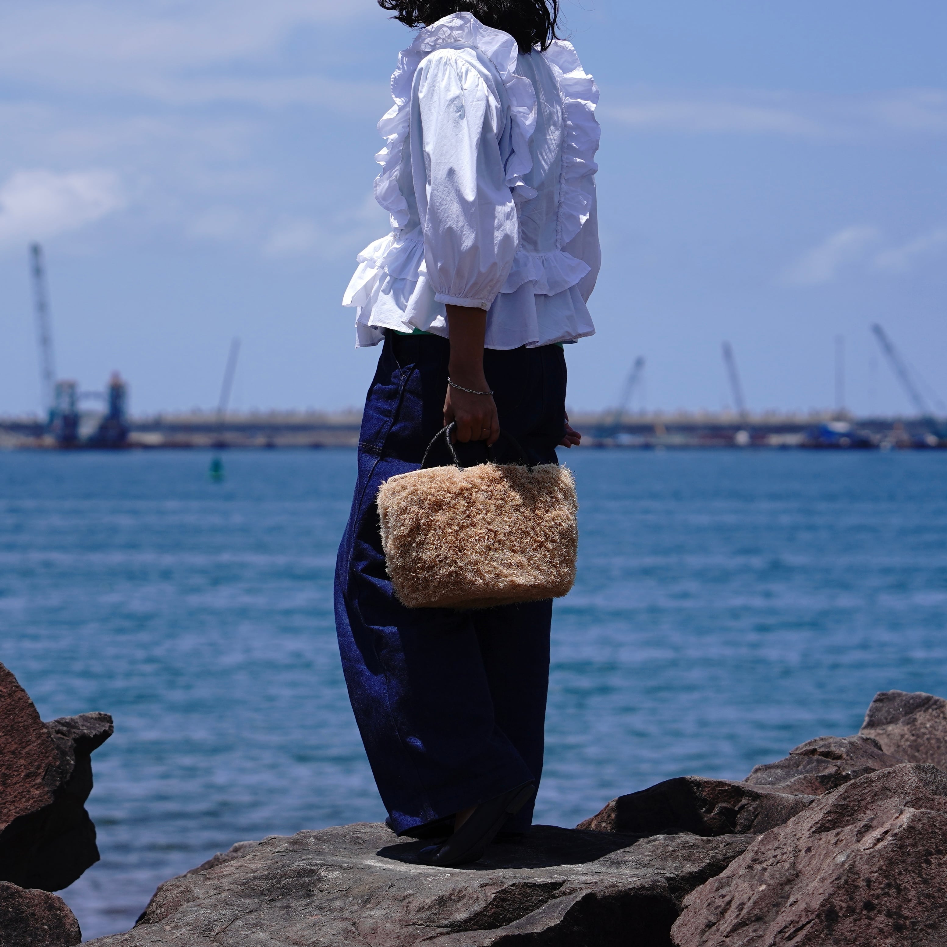 ブランド設立のきっかけとなった思い入れのあるモデルに、たっぷりとフリンジを施しました。 職人が一つひとつ、約1週間という時間をかけて丁寧に編み上げています。手仕事の温もりが伝わる、特別な仕上がりをお楽しみください。
