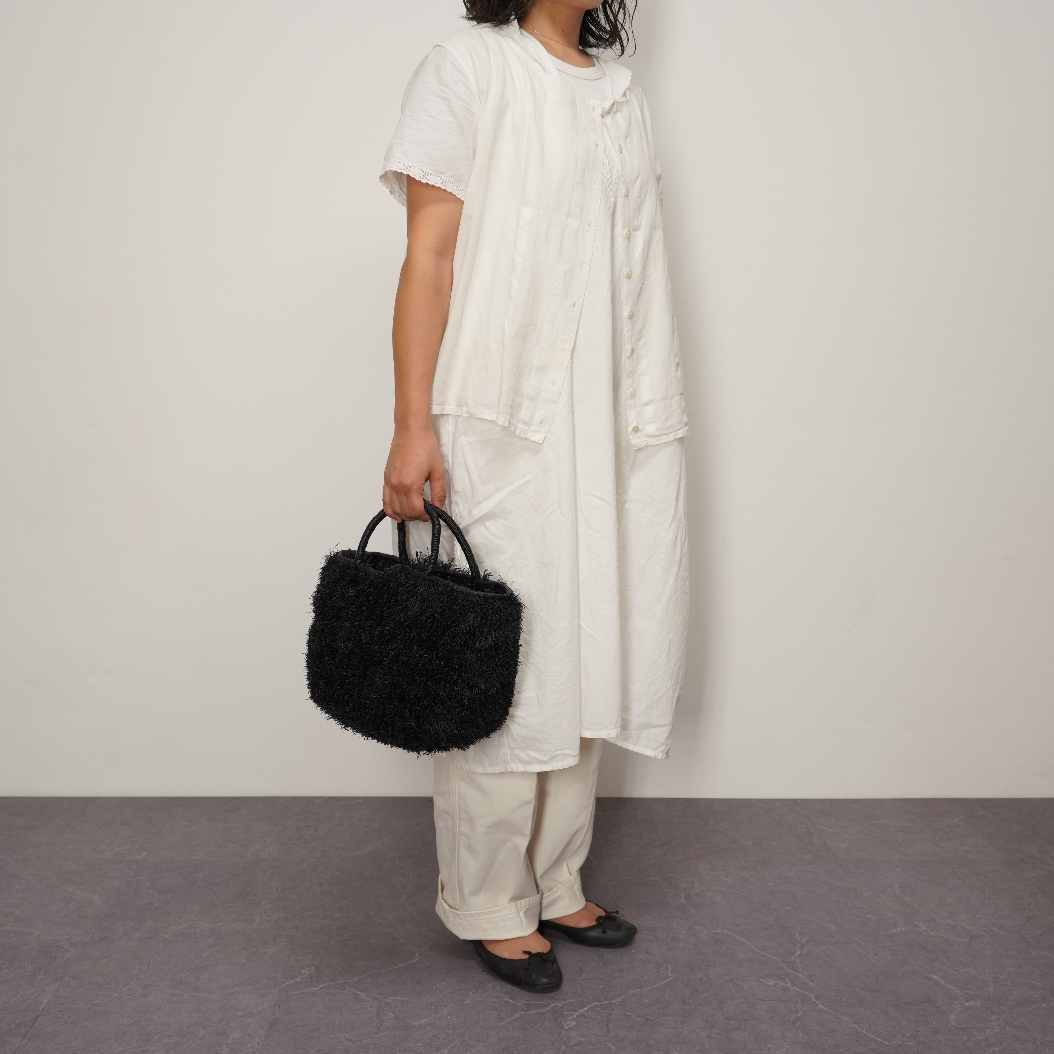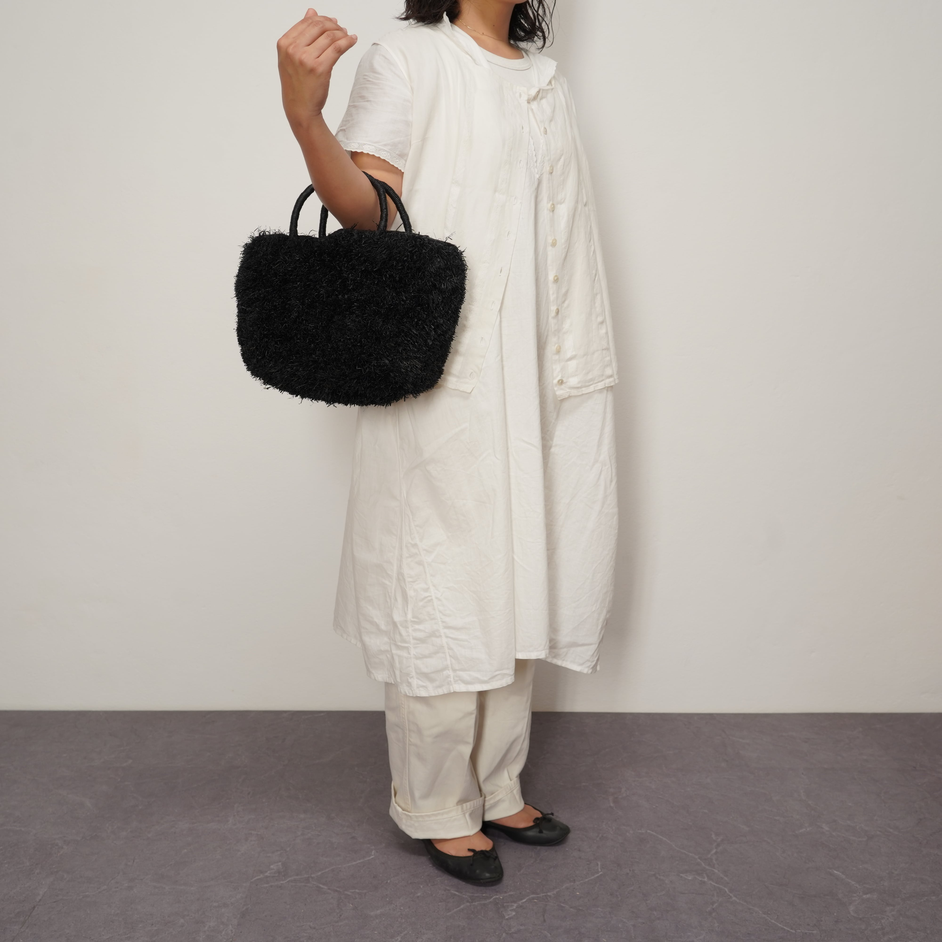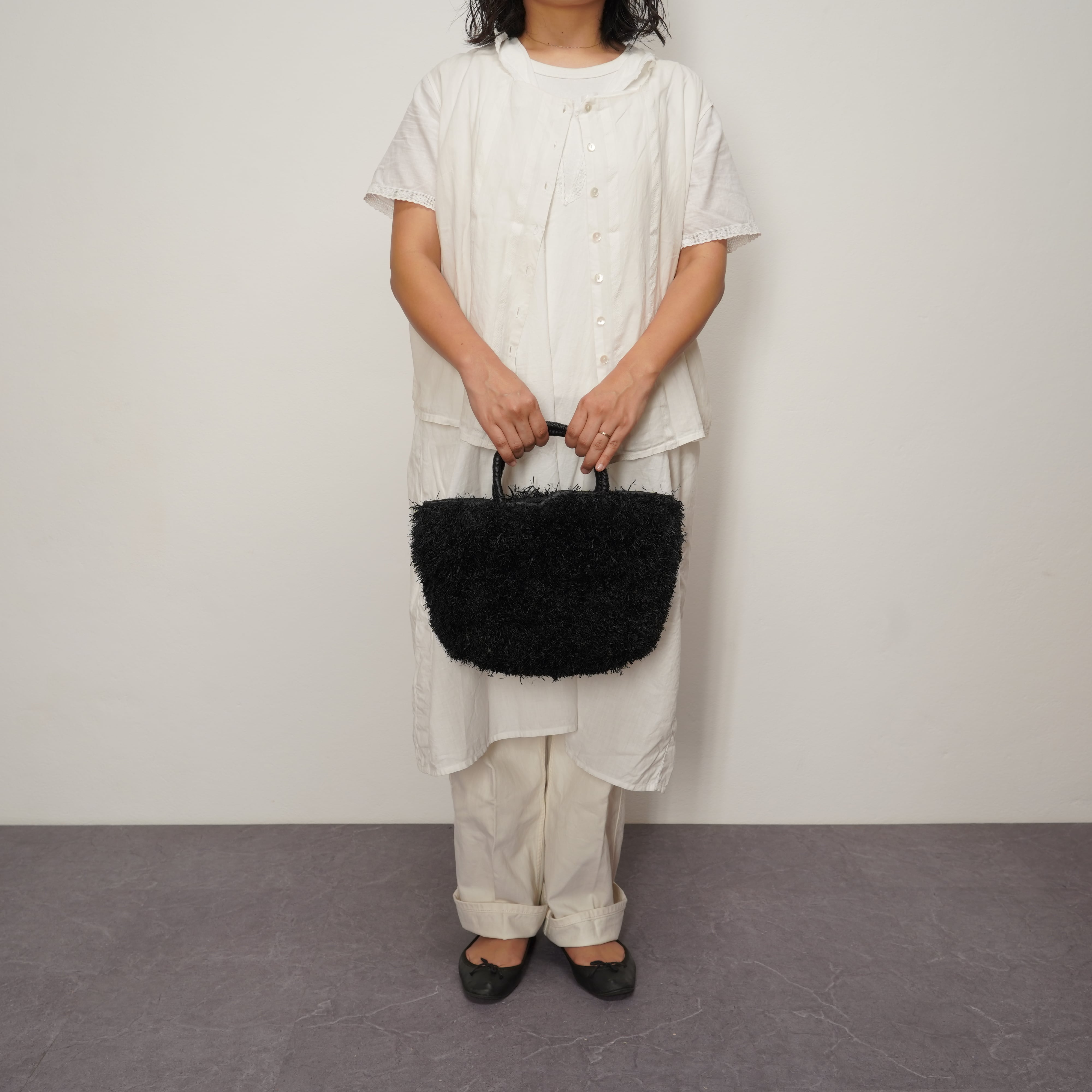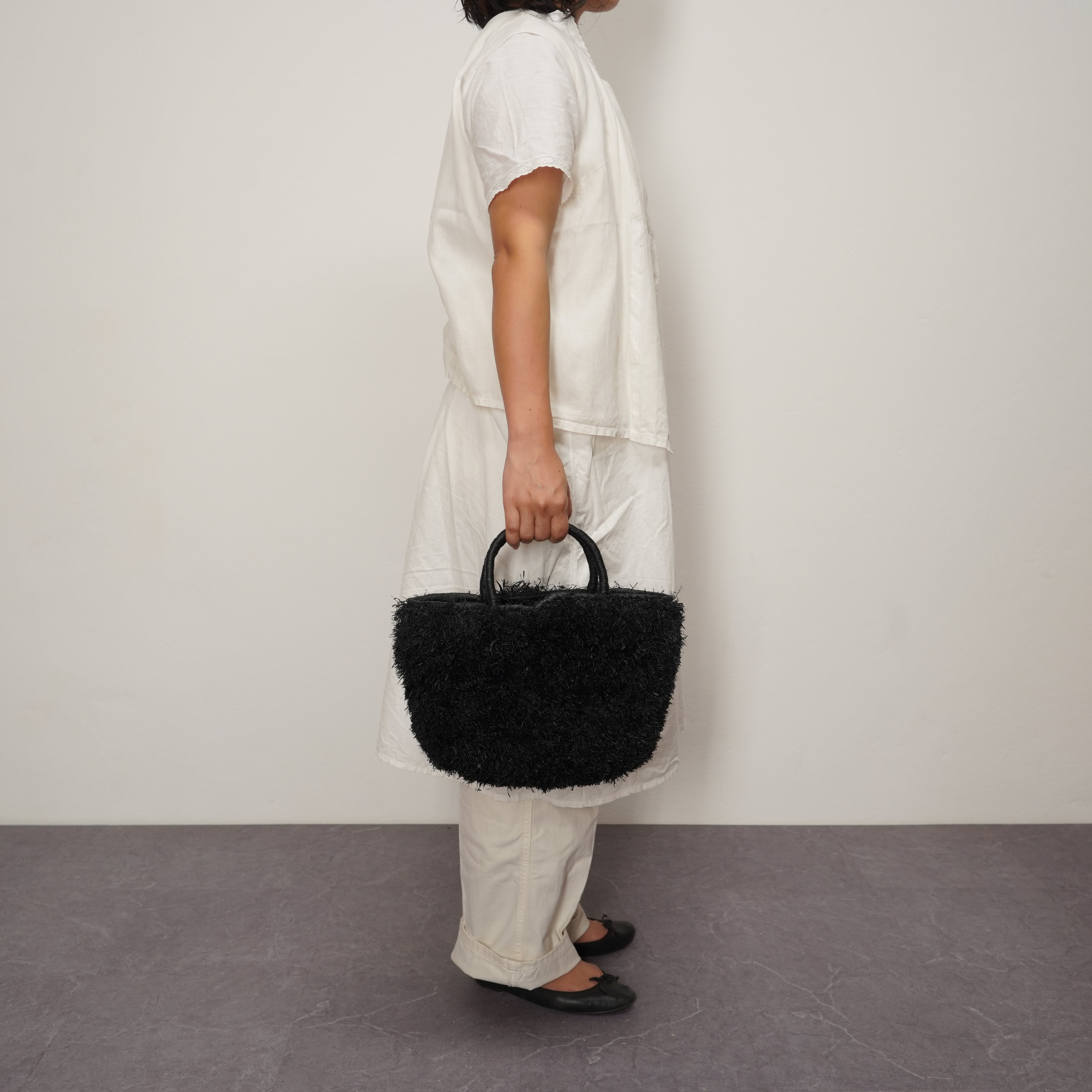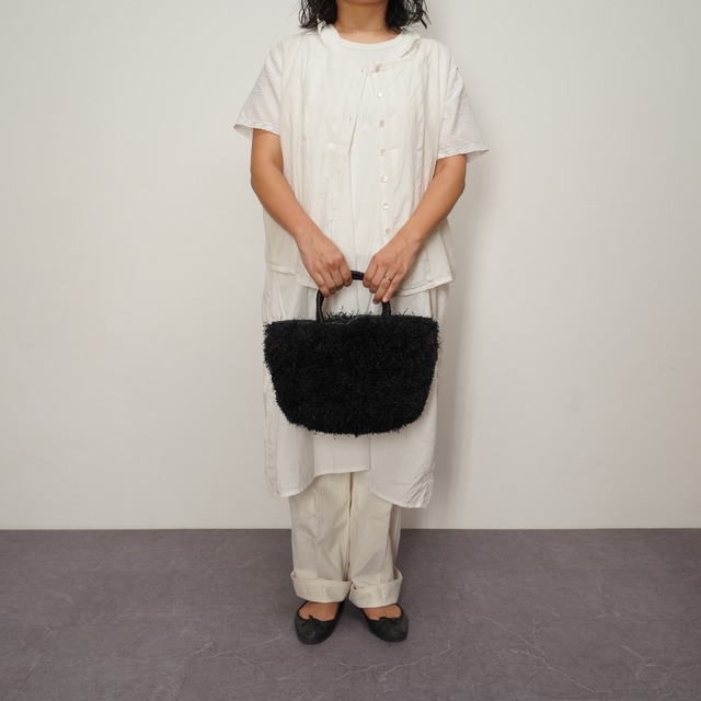 ブランド設立のきっかけとなった思い入れのあるモデルに、たっぷりとフリンジを施しました。 職人が一つひとつ、約1週間という時間をかけて丁寧に編み上げています。手仕事の温もりが伝わる、特別な仕上がりをお楽しみください。