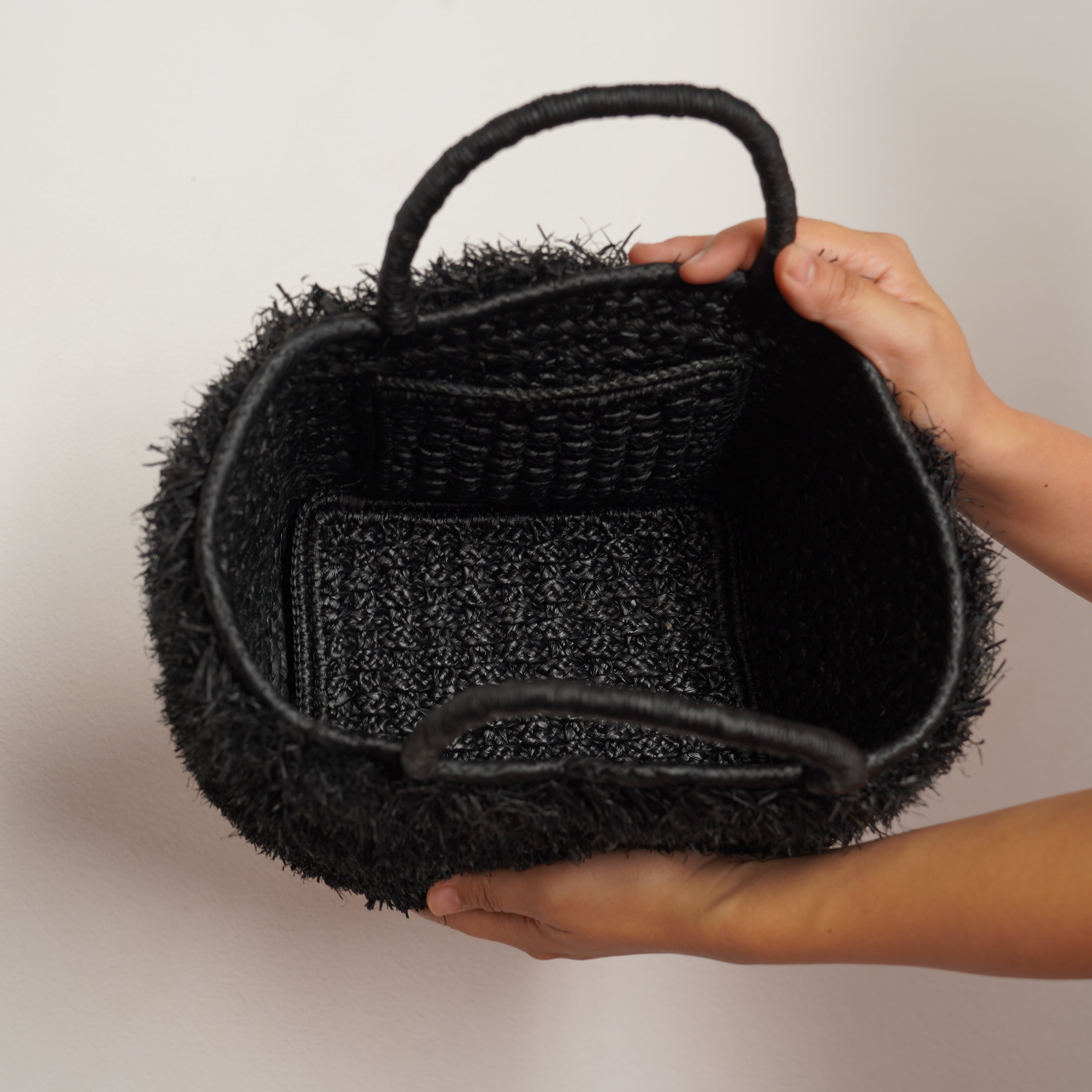 カゴバッグには珍しく、内側にポケットを付けました。スマートフォンや鍵など、バッグの中で迷子になりがちな小物をスムーズに出し入れできます。
