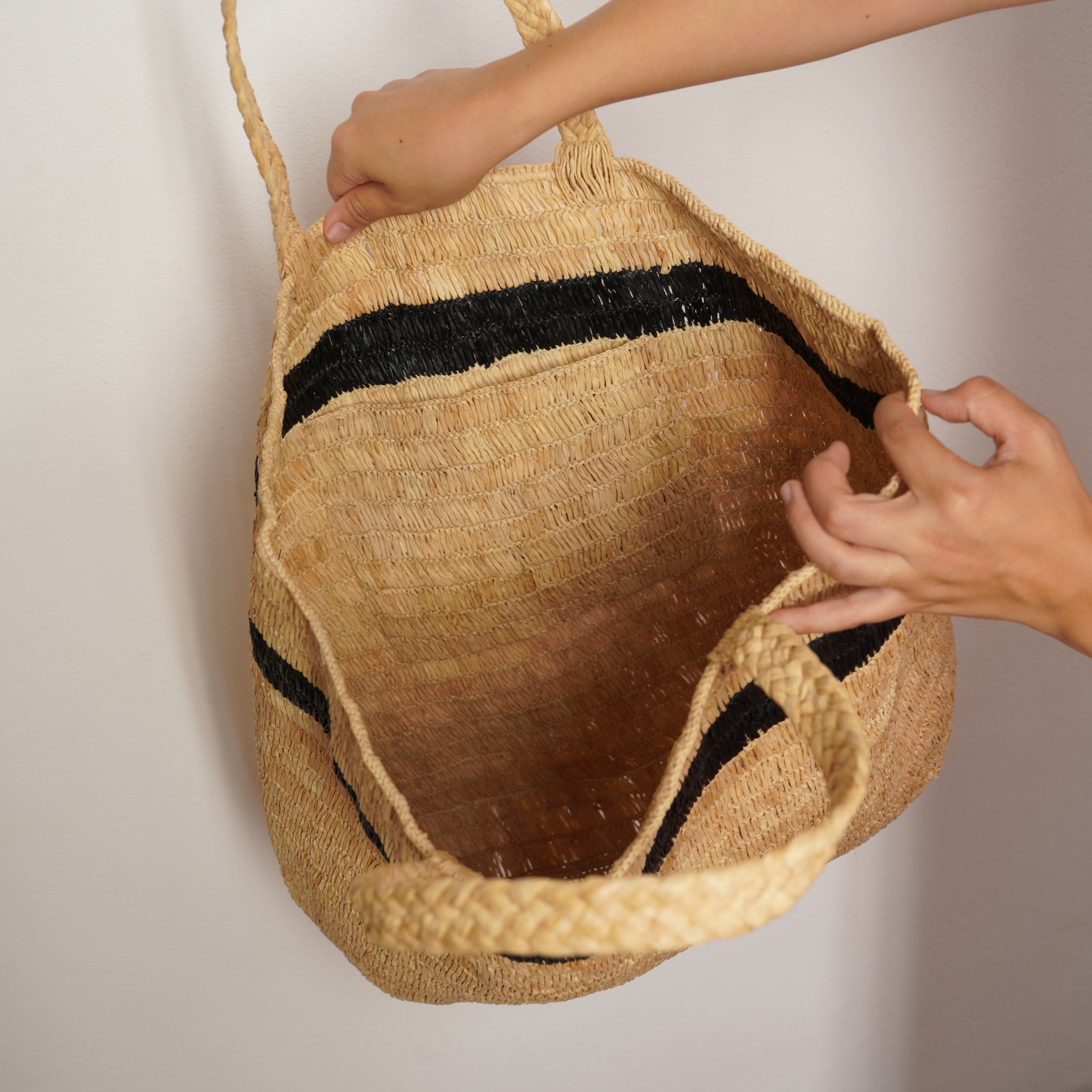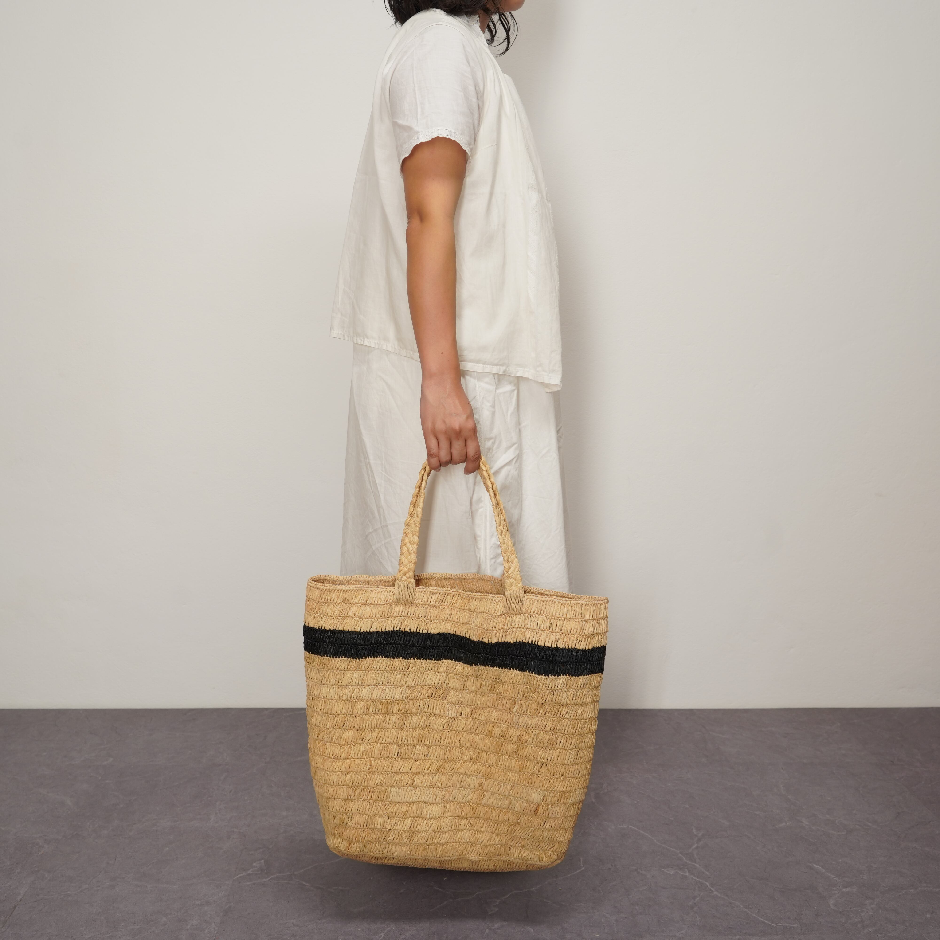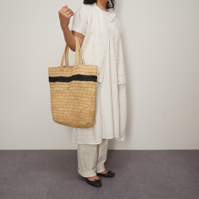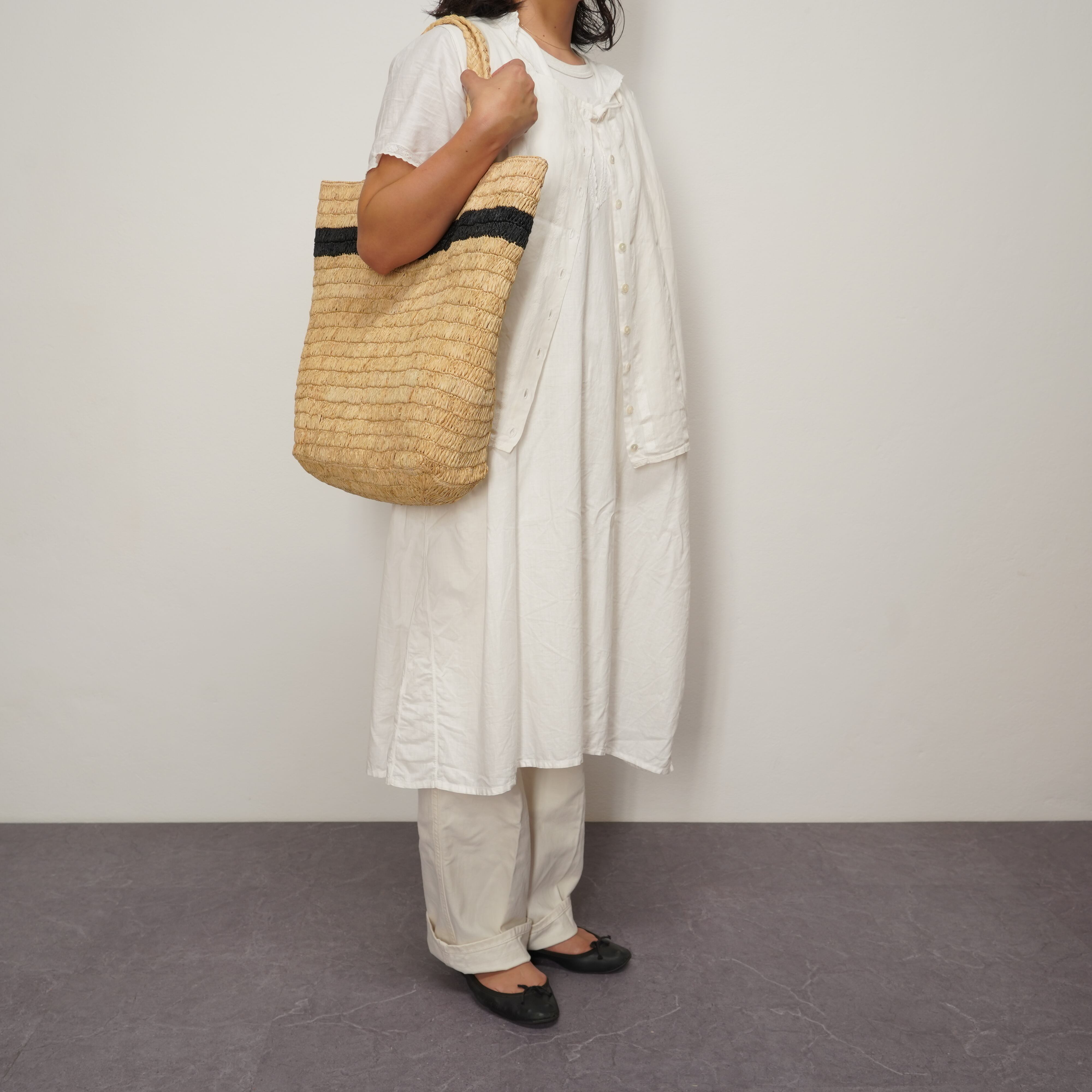 たっぷりと荷物が入る頼もしいサイズ感ながら、ラフィアならではの驚くような軽やかさで、一日中軽快に持ち歩けます。