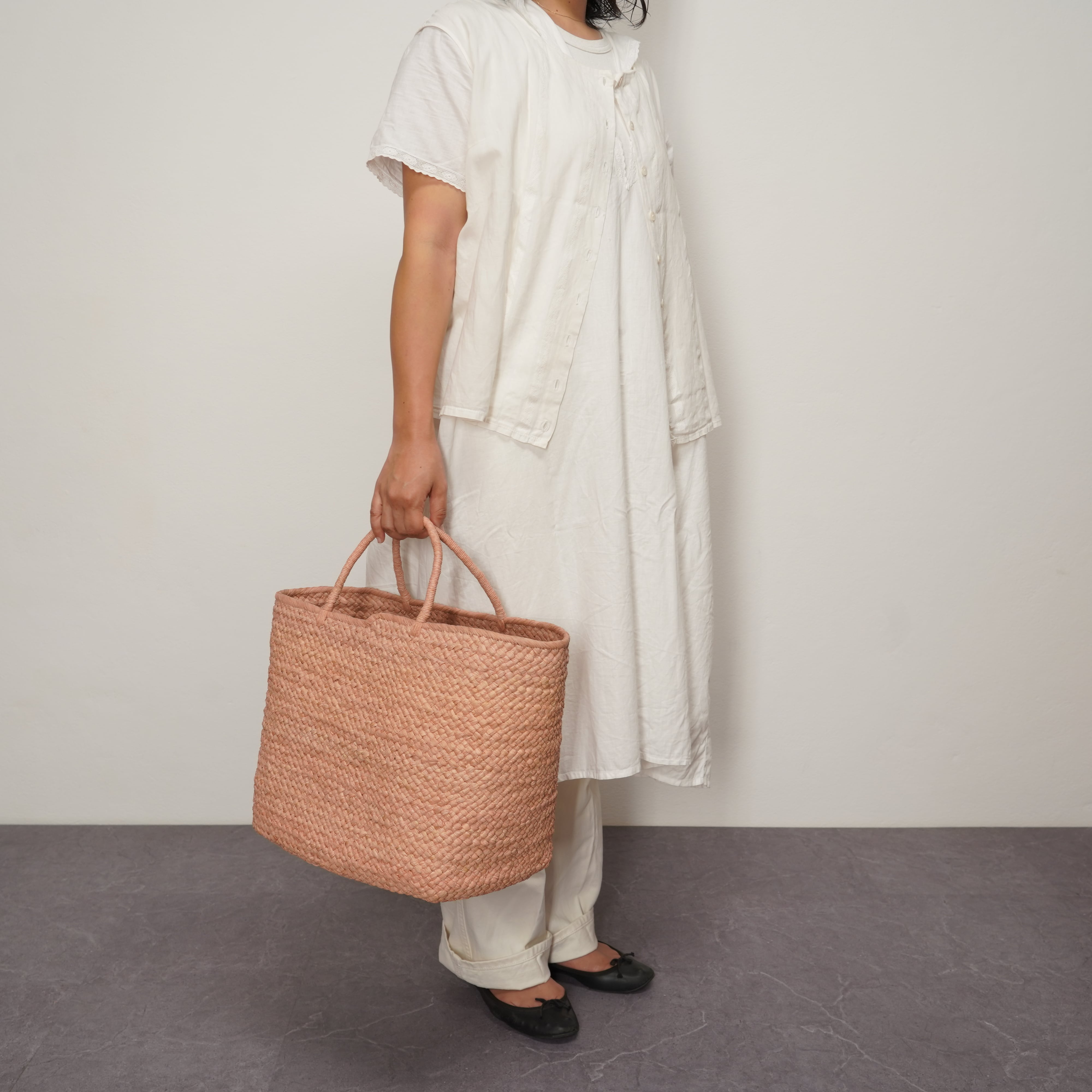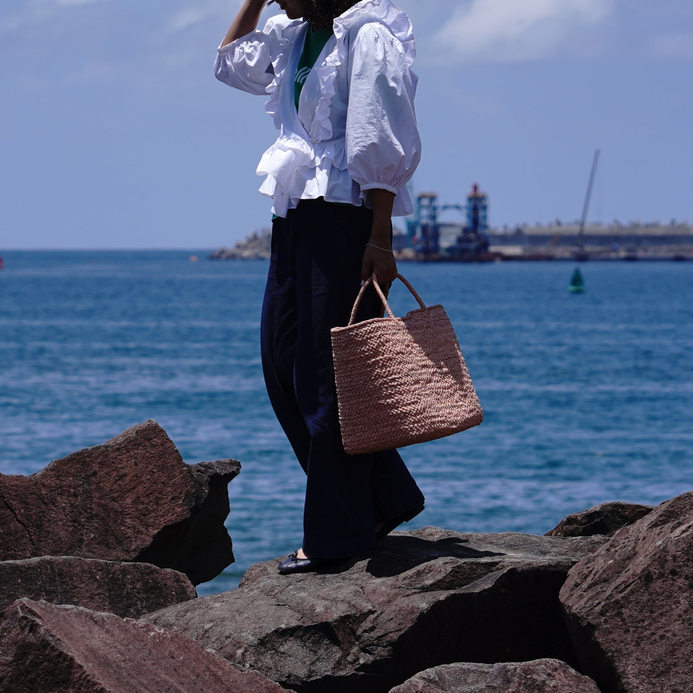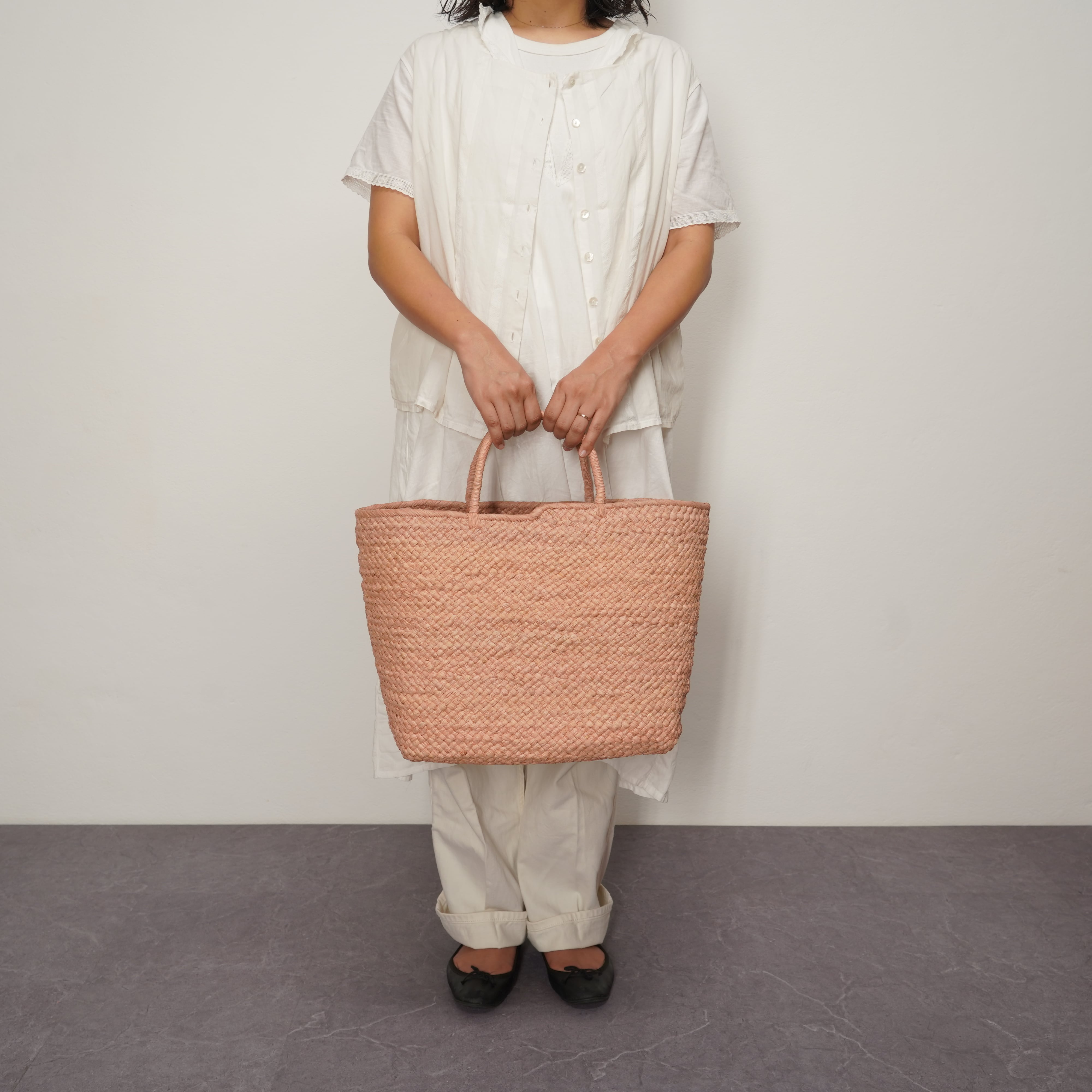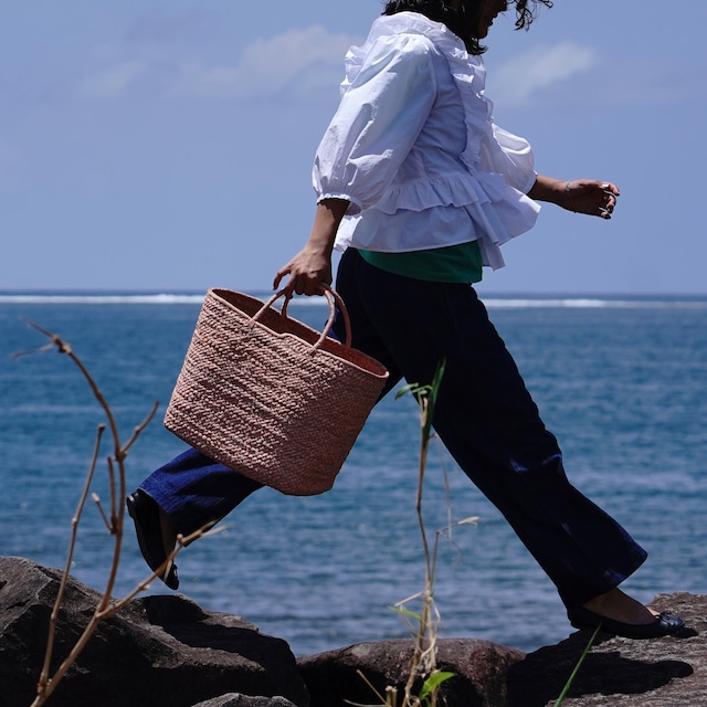 マルシェバッグシリーズに、待望のピンクが仲間入りしました。 天然素材のナチュラルな質感と、心華やぐ柔らかなピンクが重なり合い、手にするだけで気分を明るくしてくれるような仕上がりです。 コーディネートの差し色としてはもちろん、デニムなどのカジュアルな装いにも優しく馴染む、毎日のお出かけに彩りを添えてくれるバッグです。