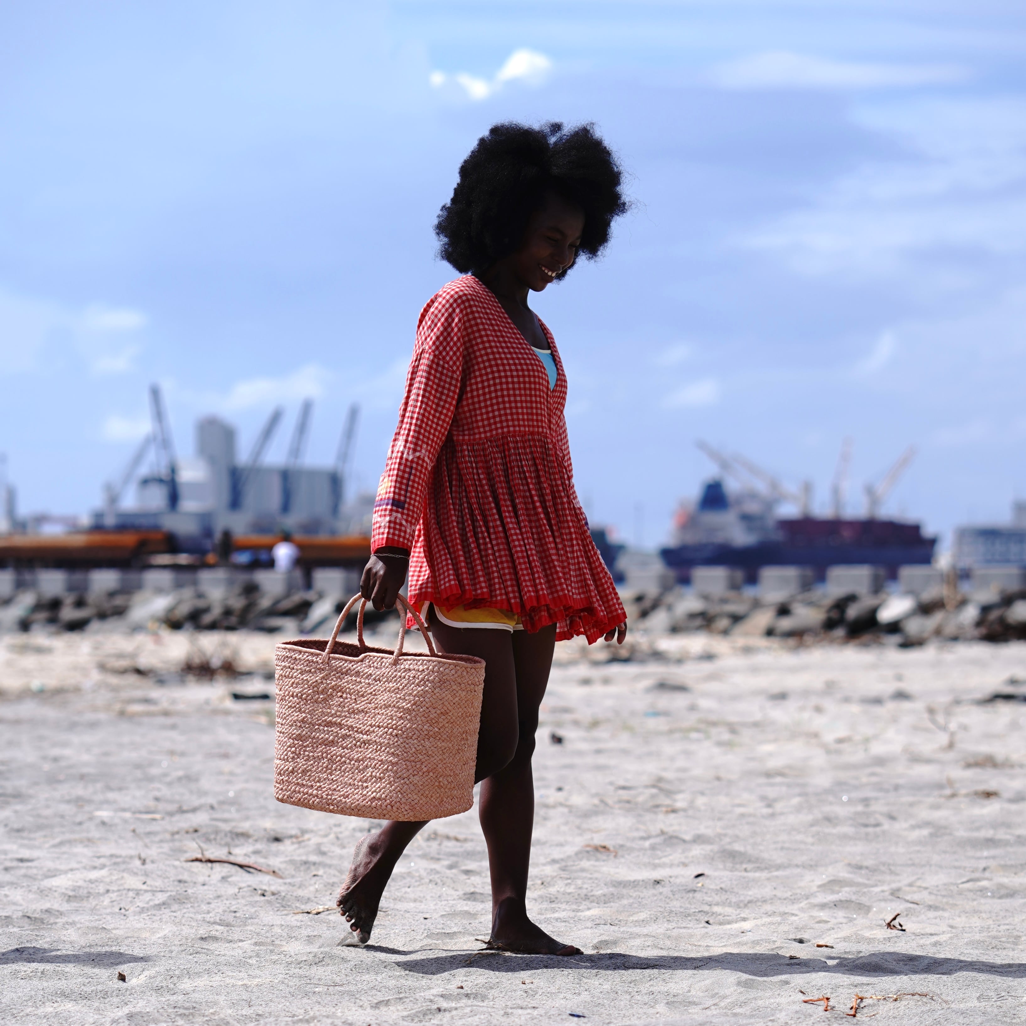 "From weekend trips to daily errands." With a generous 20L capacity, this size is perfect for a one-night trip. Despite its size, the raffia material makes it remarkably lightweight, making it an ideal companion for grocery shopping, picnics, or as a mother’s bag.