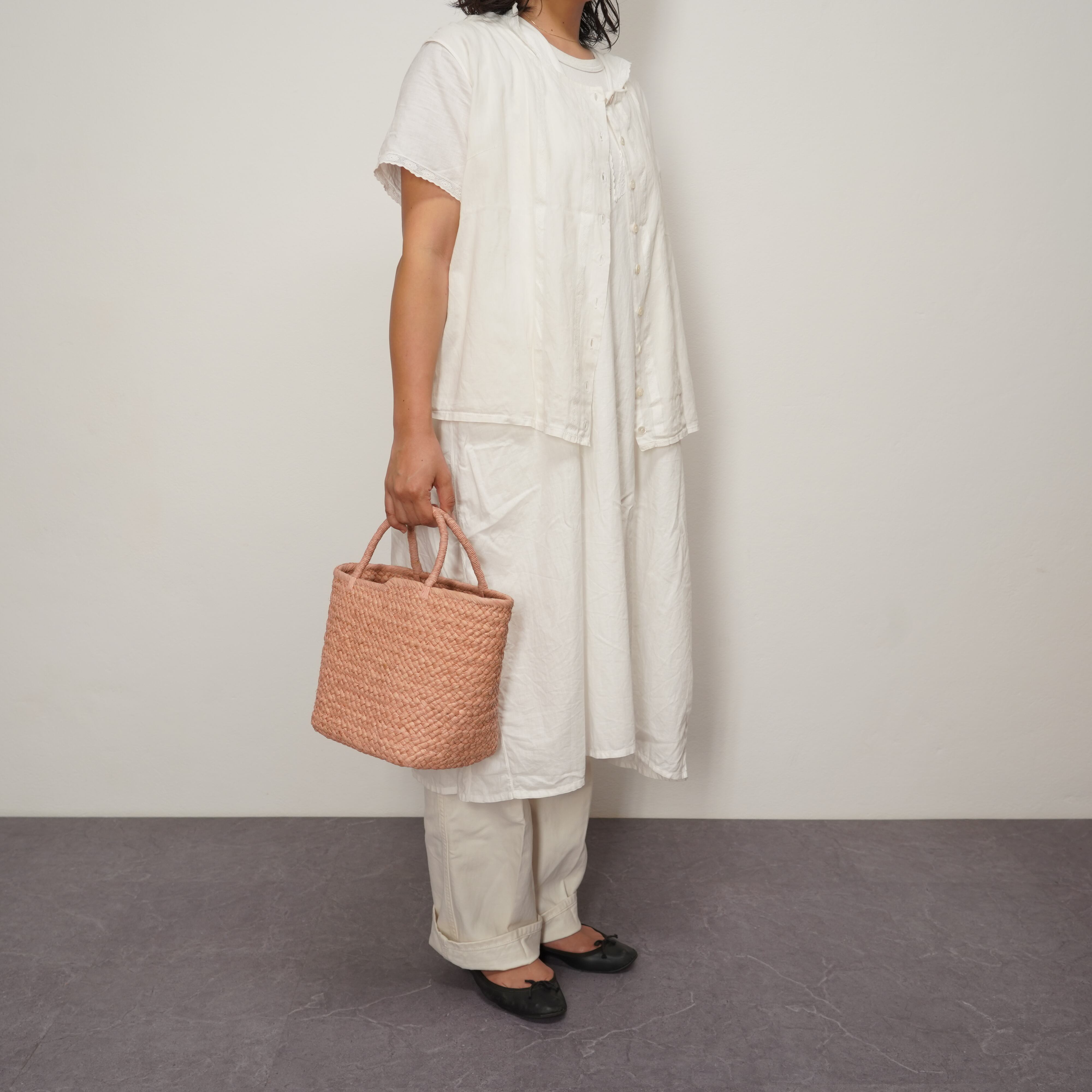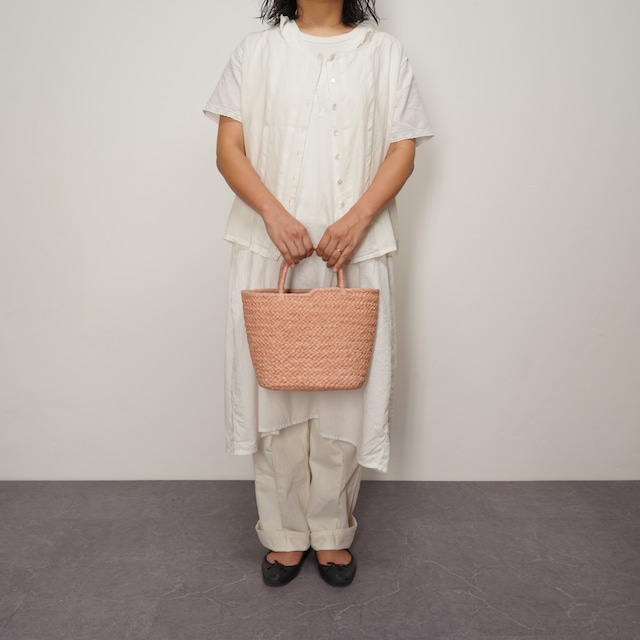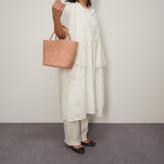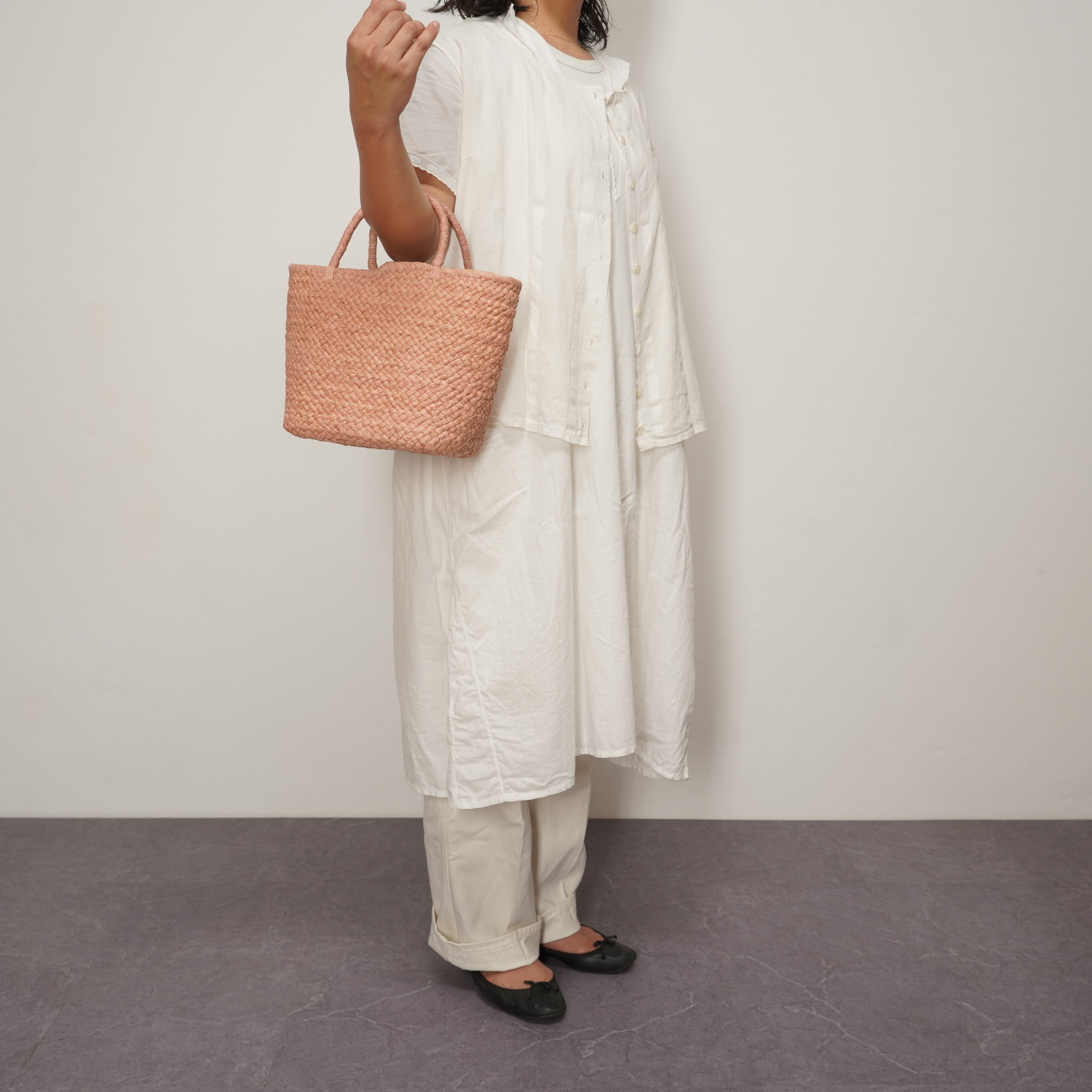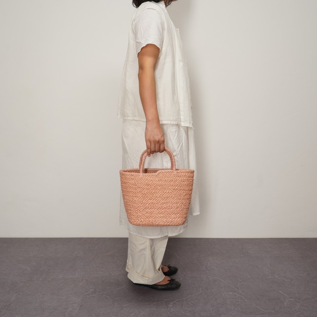 マルシェバッグシリーズに、待望のピンクが仲間入りしました。 天然素材のナチュラルな質感と、心華やぐ柔らかなピンクが重なり合い、手にするだけで気分を明るくしてくれるような仕上がりです。 コーディネートの差し色としてはもちろん、デニムなどのカジュアルな装いにも優しく馴染む、毎日のお出かけに彩りを添えてくれるバッグです。