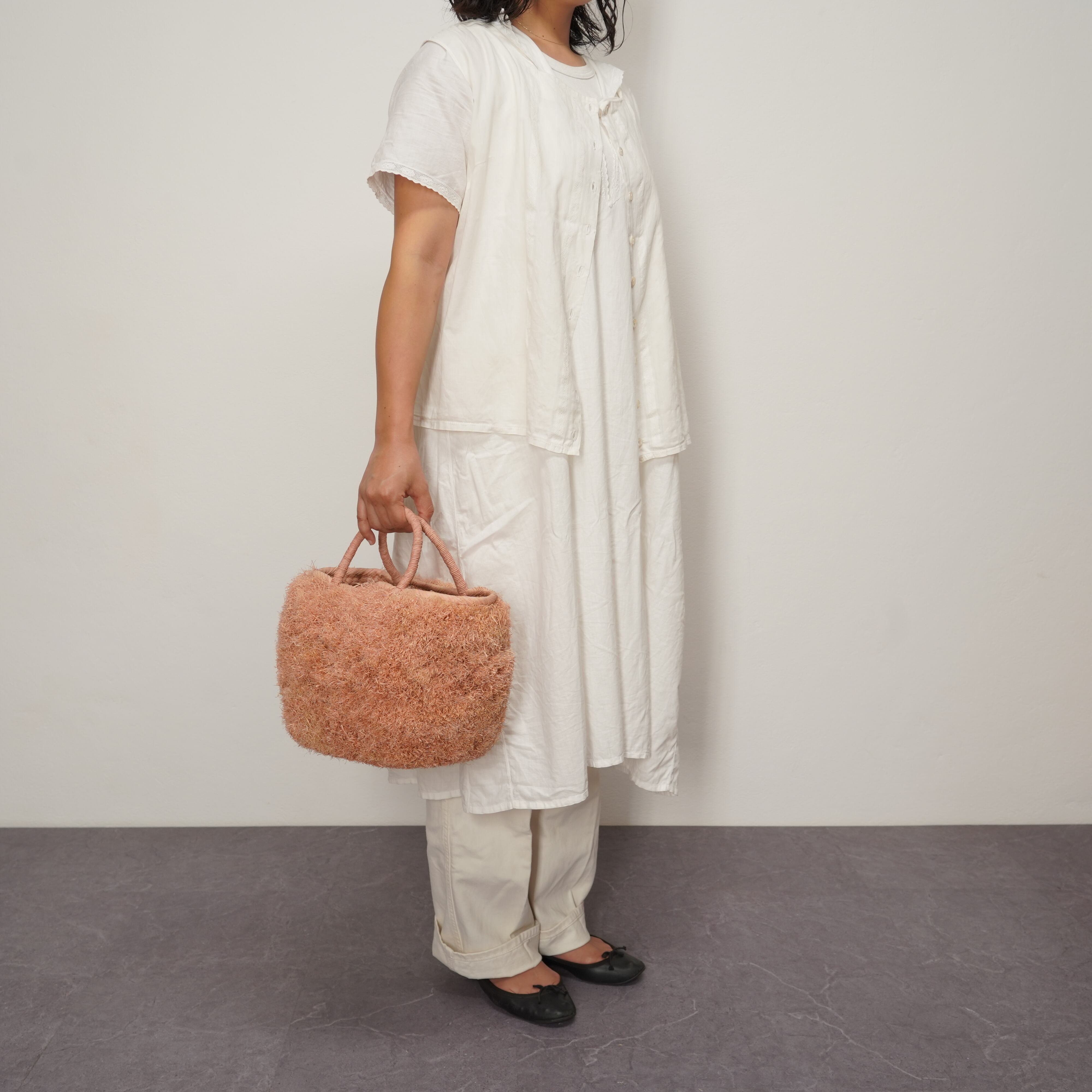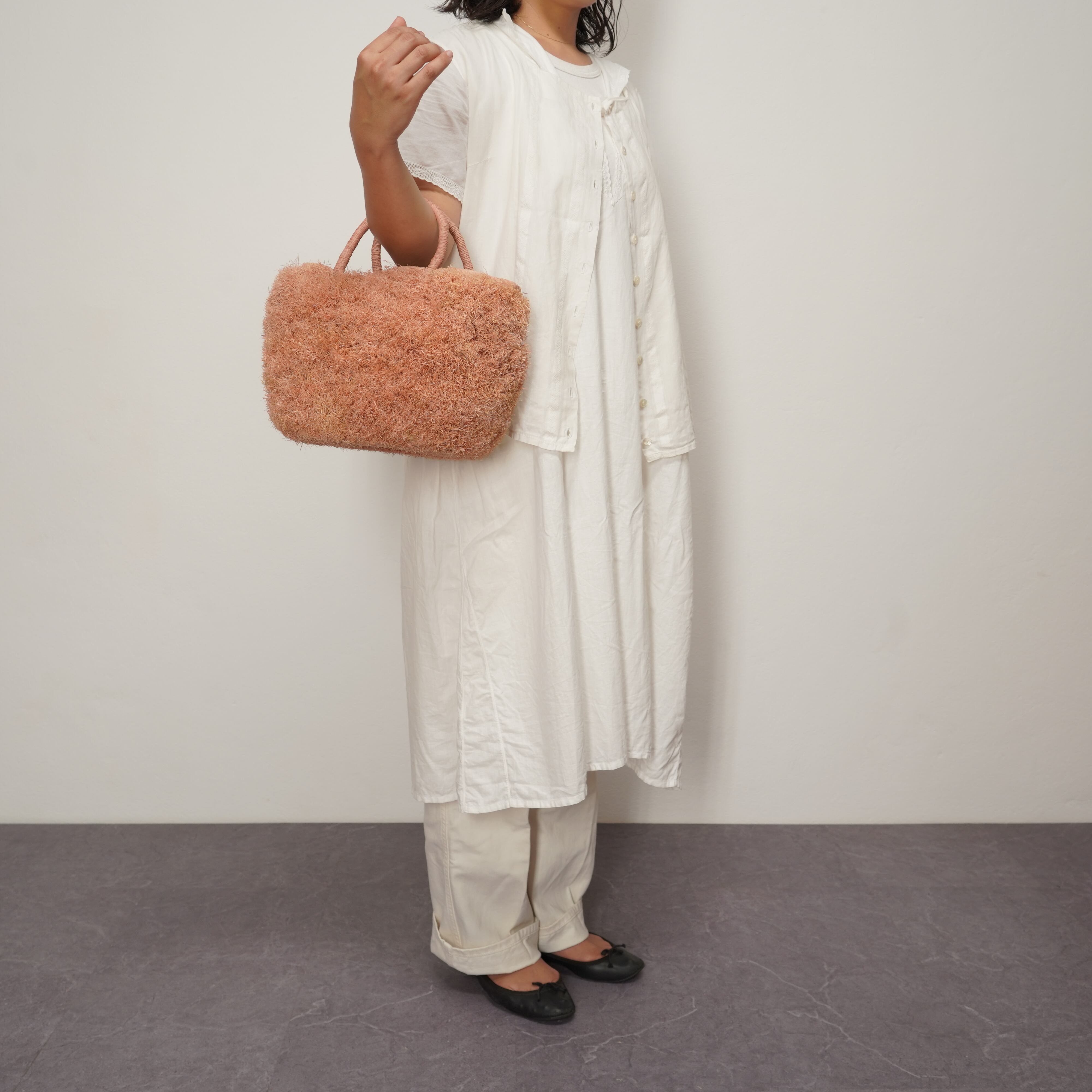 ブランド設立のきっかけとなった思い入れのあるモデルに、たっぷりとフリンジを施しました。 職人が一つひとつ、約1週間という時間をかけて丁寧に編み上げています。手仕事の温もりが伝わる、特別な仕上がりをお楽しみください。