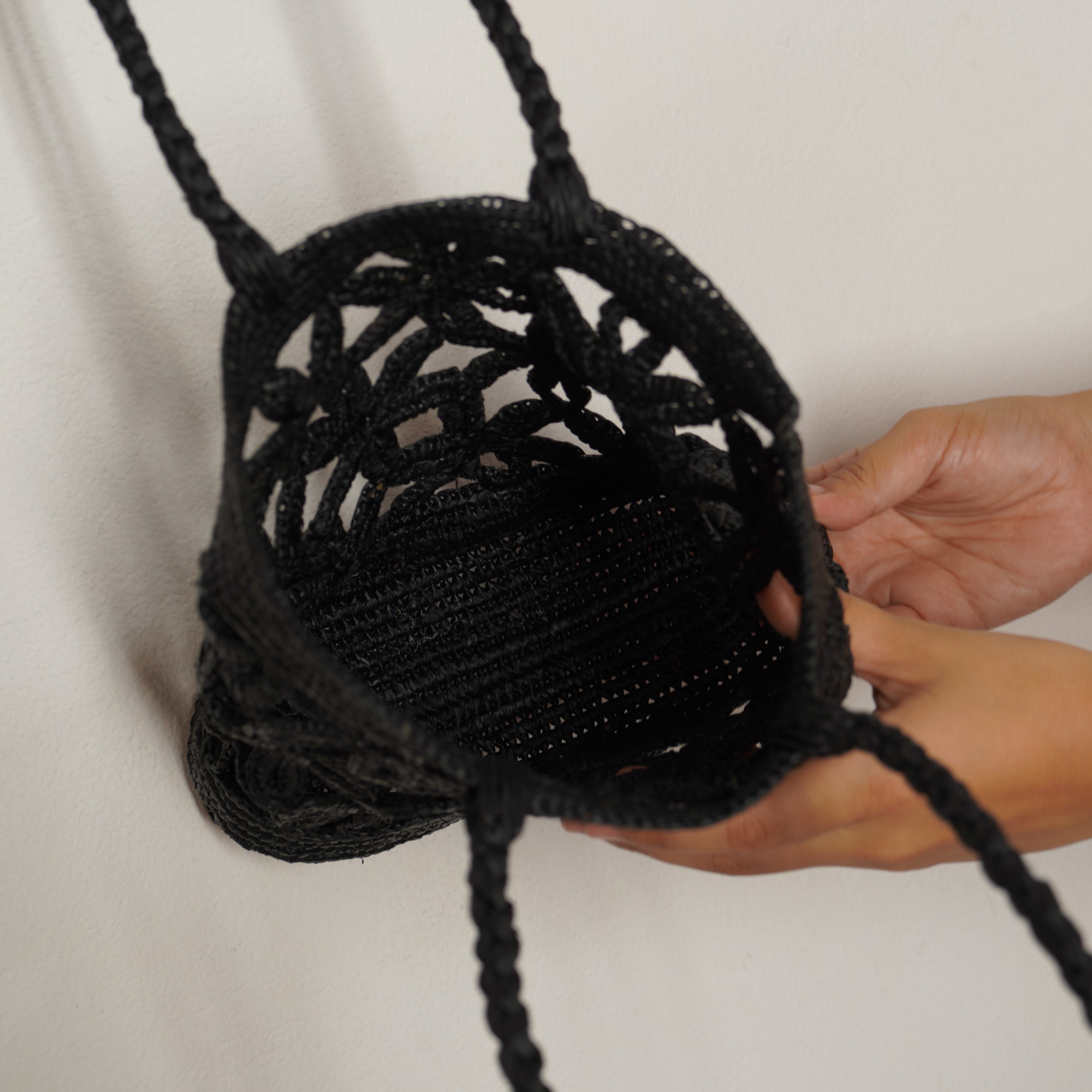 Designed with inspiration from the colorful flowers of Madagascar, this mini bag features a beautiful open-weave structure that offers a light, airy feel. The intricate craftsmanship creates a gentle transparency, adding a refreshing and graceful touch to your look.
