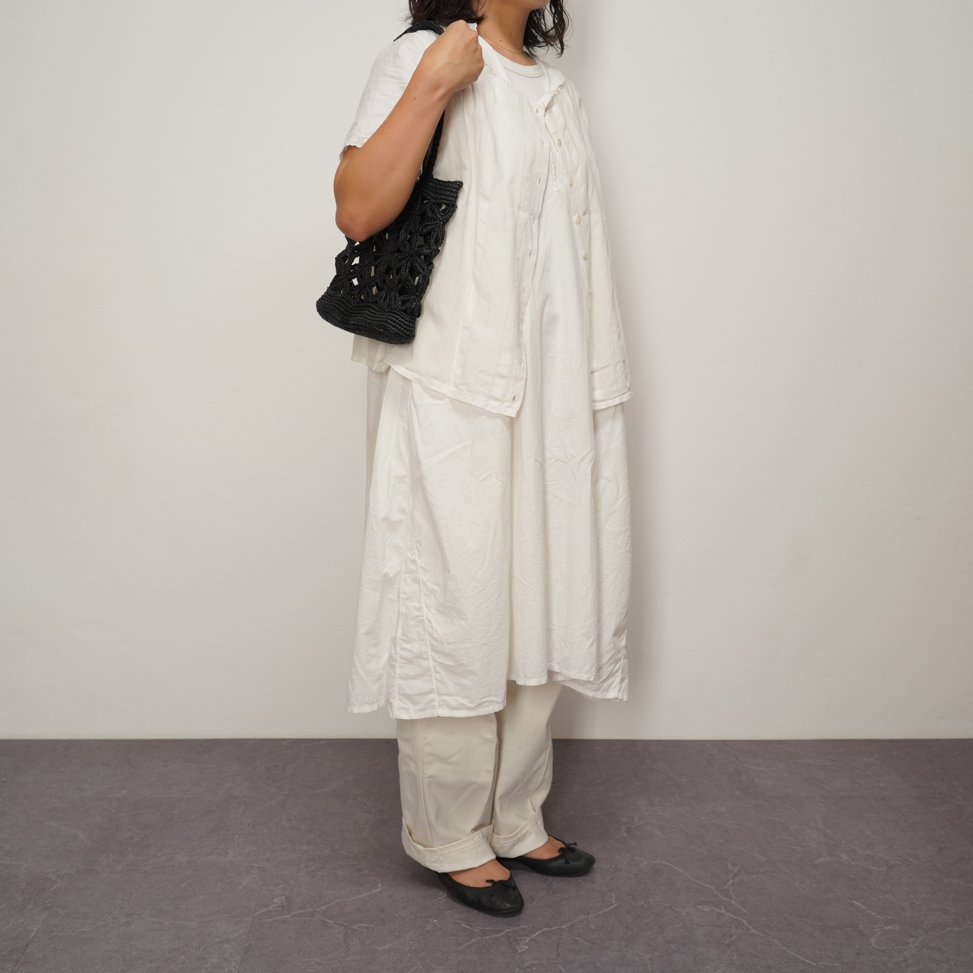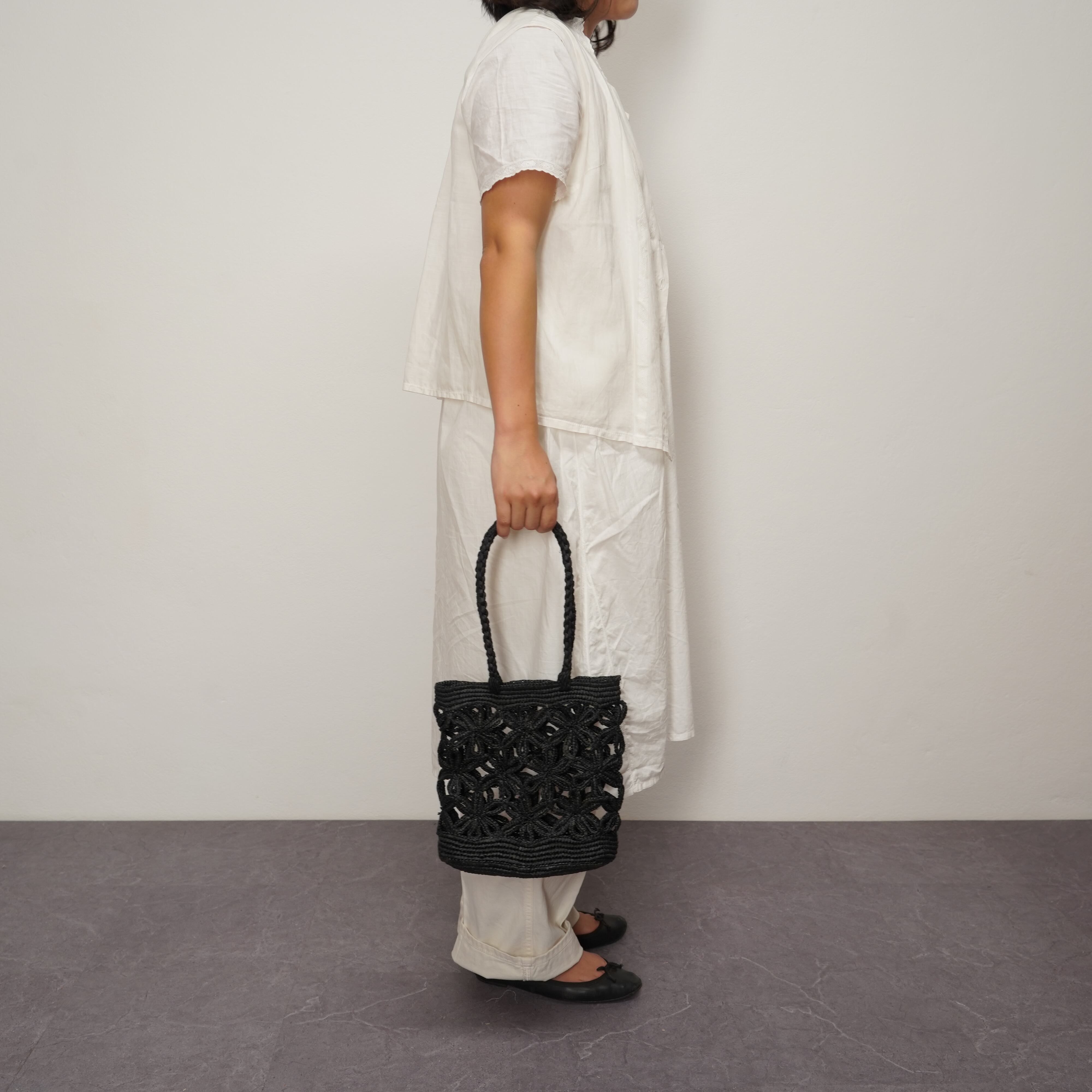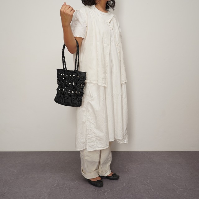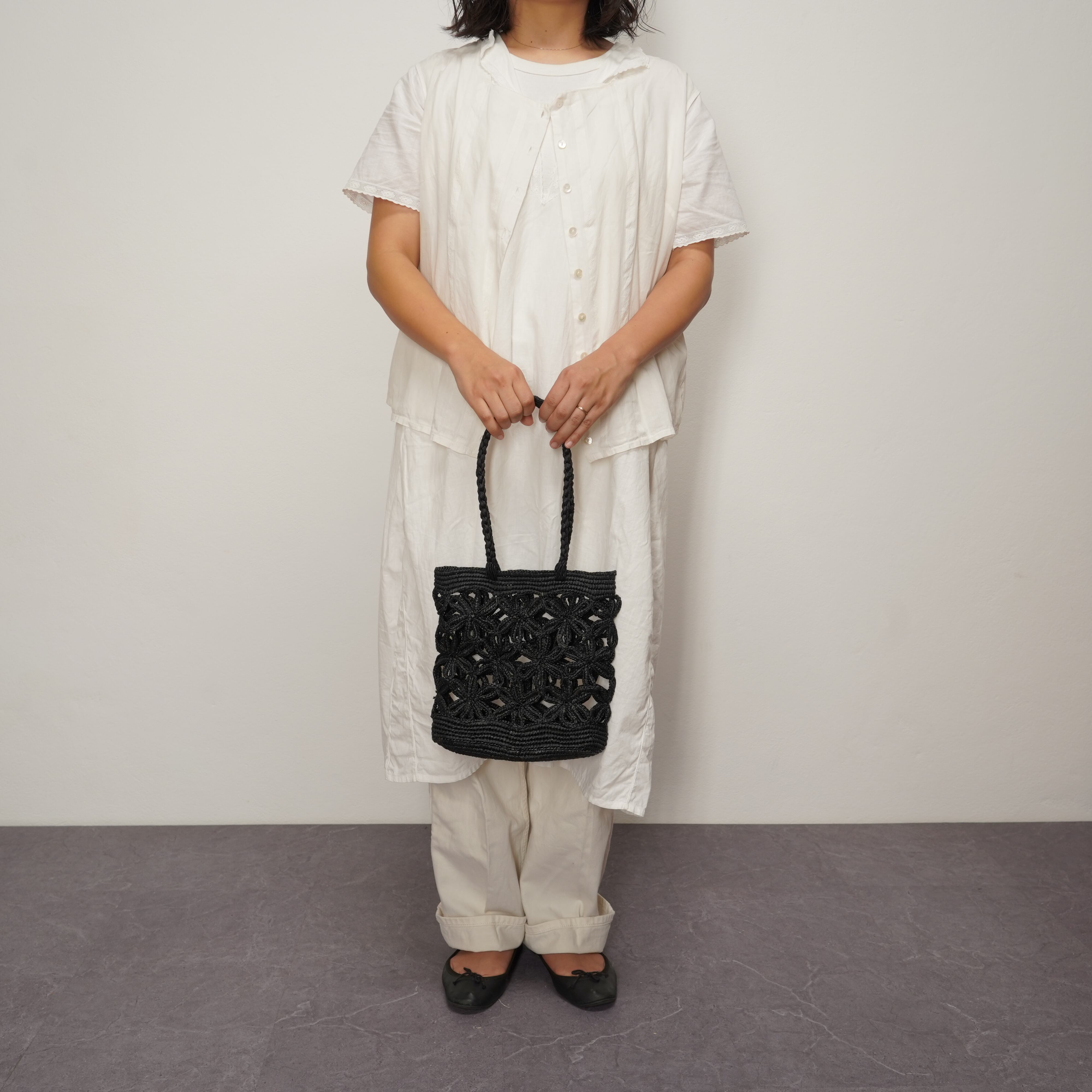 マダガスカルの鮮やかな花々から着想を得た、中が透けて見える軽やかなデザインが特徴です。繊細な手仕事による透かし編みが、装いに涼やかで可憐なアクセントを添えてくれます。