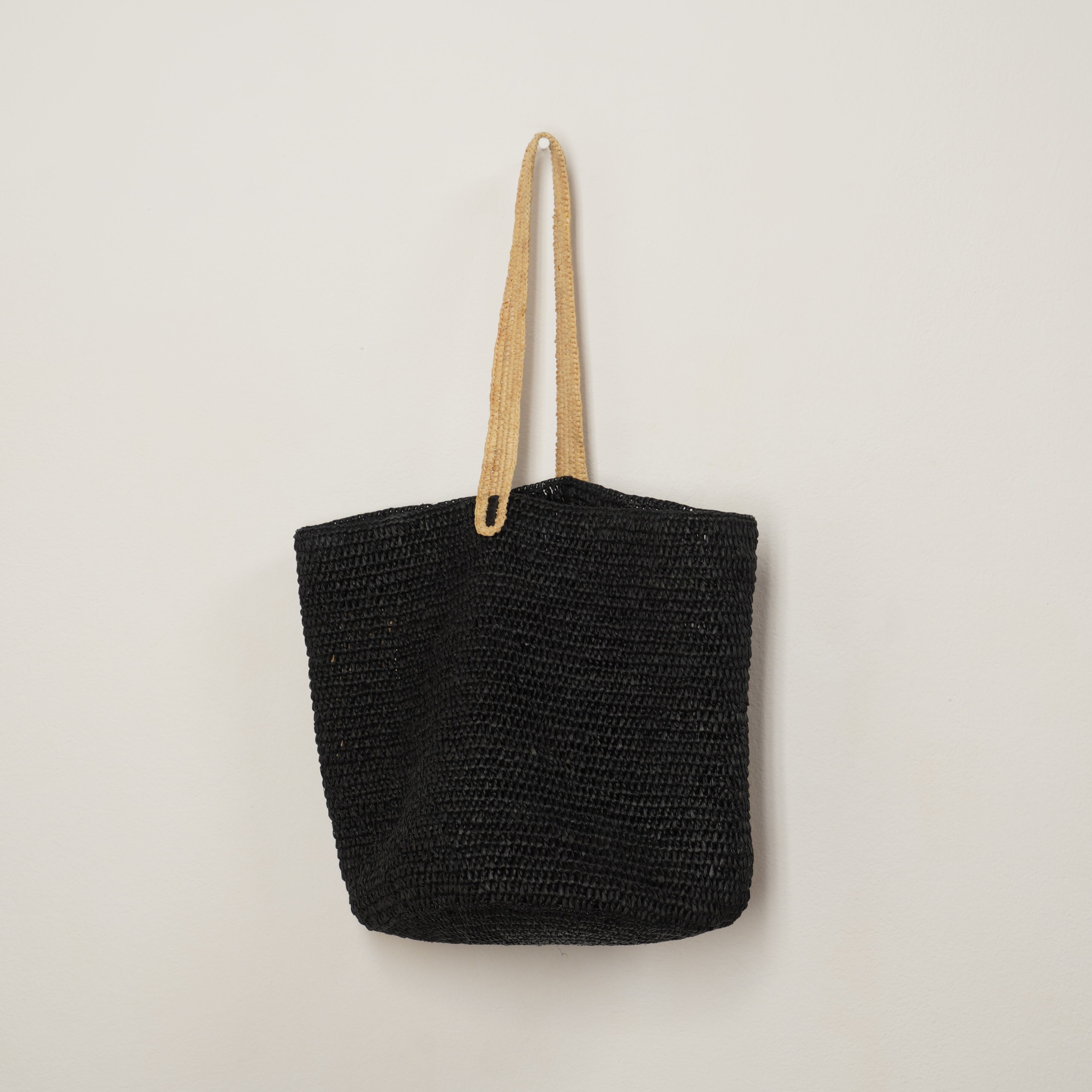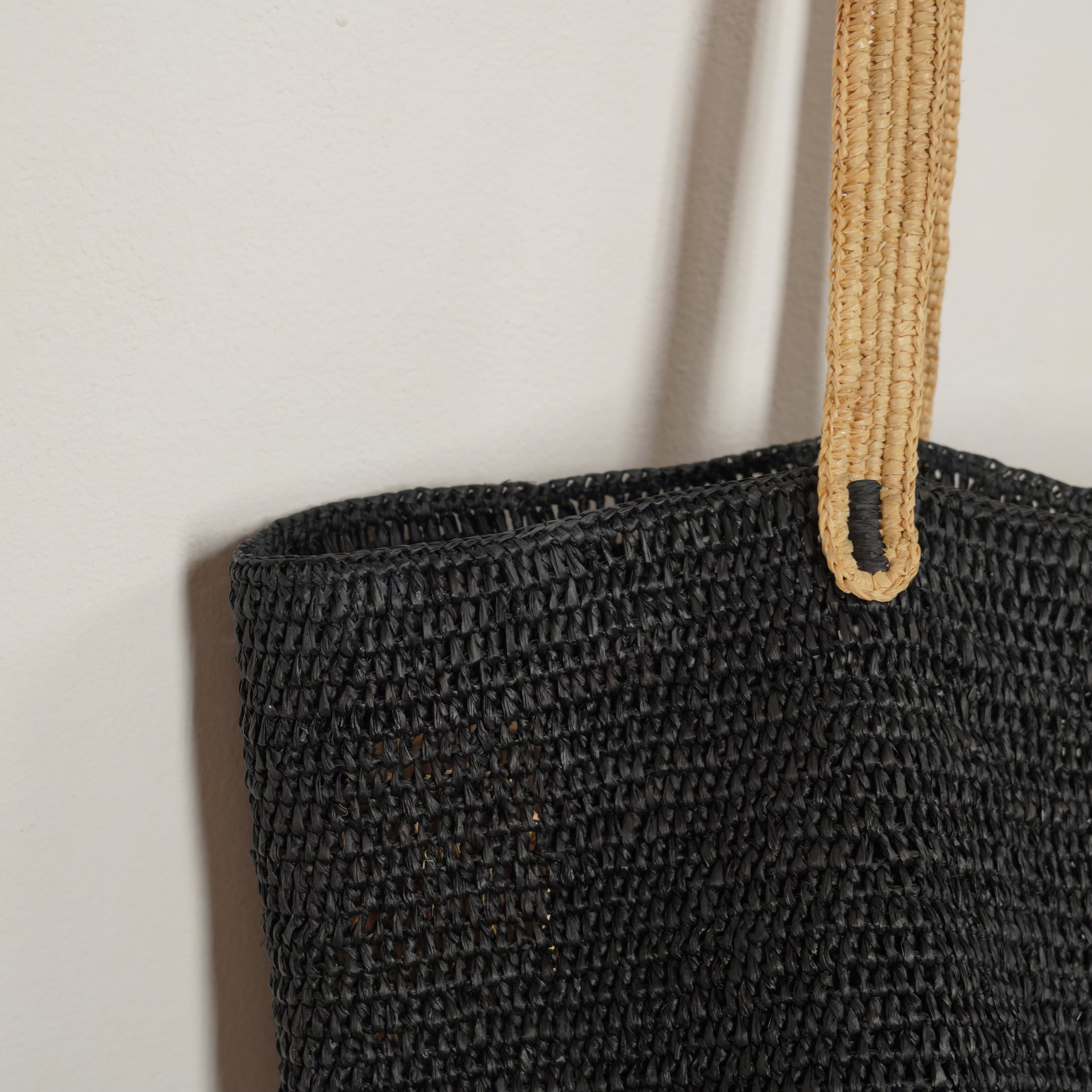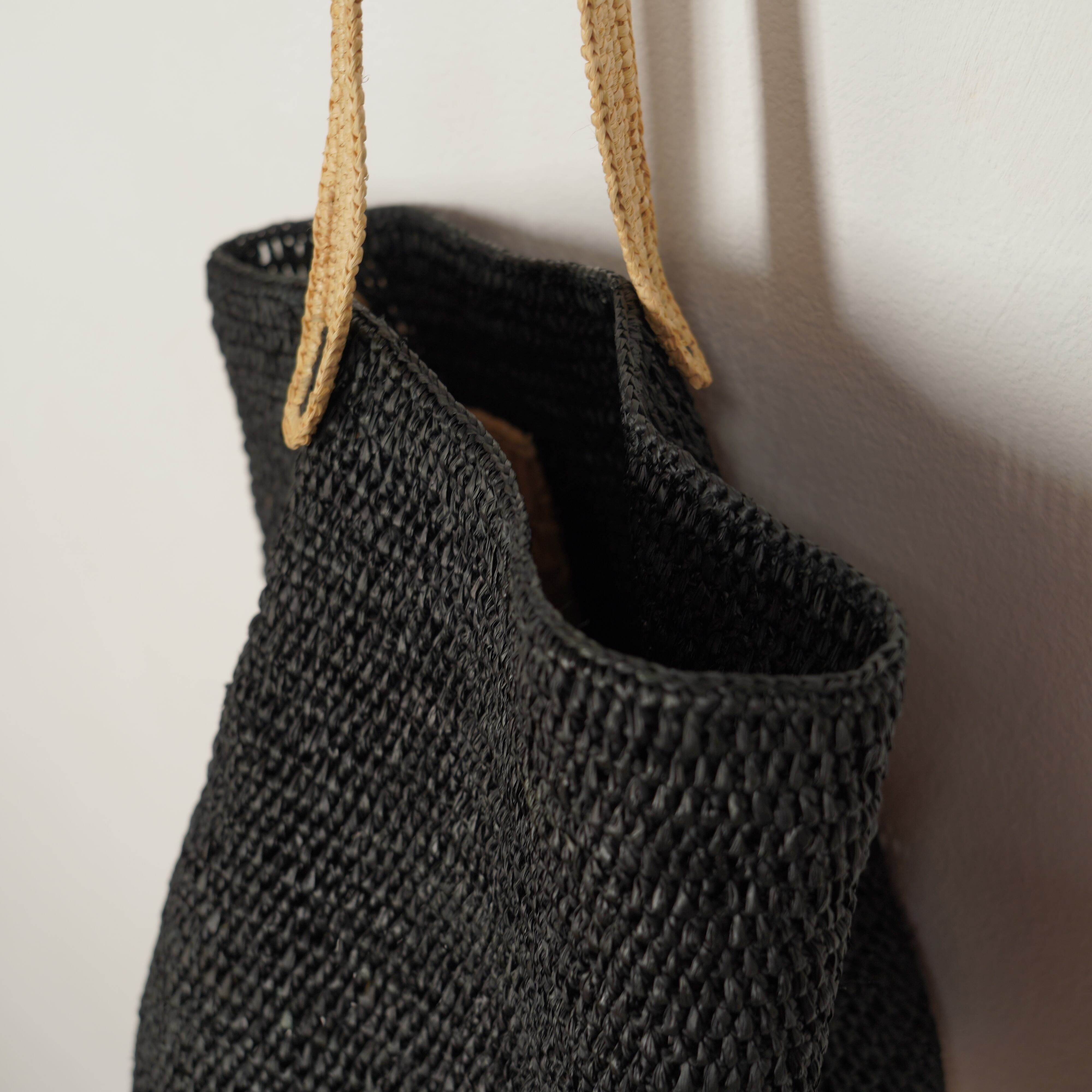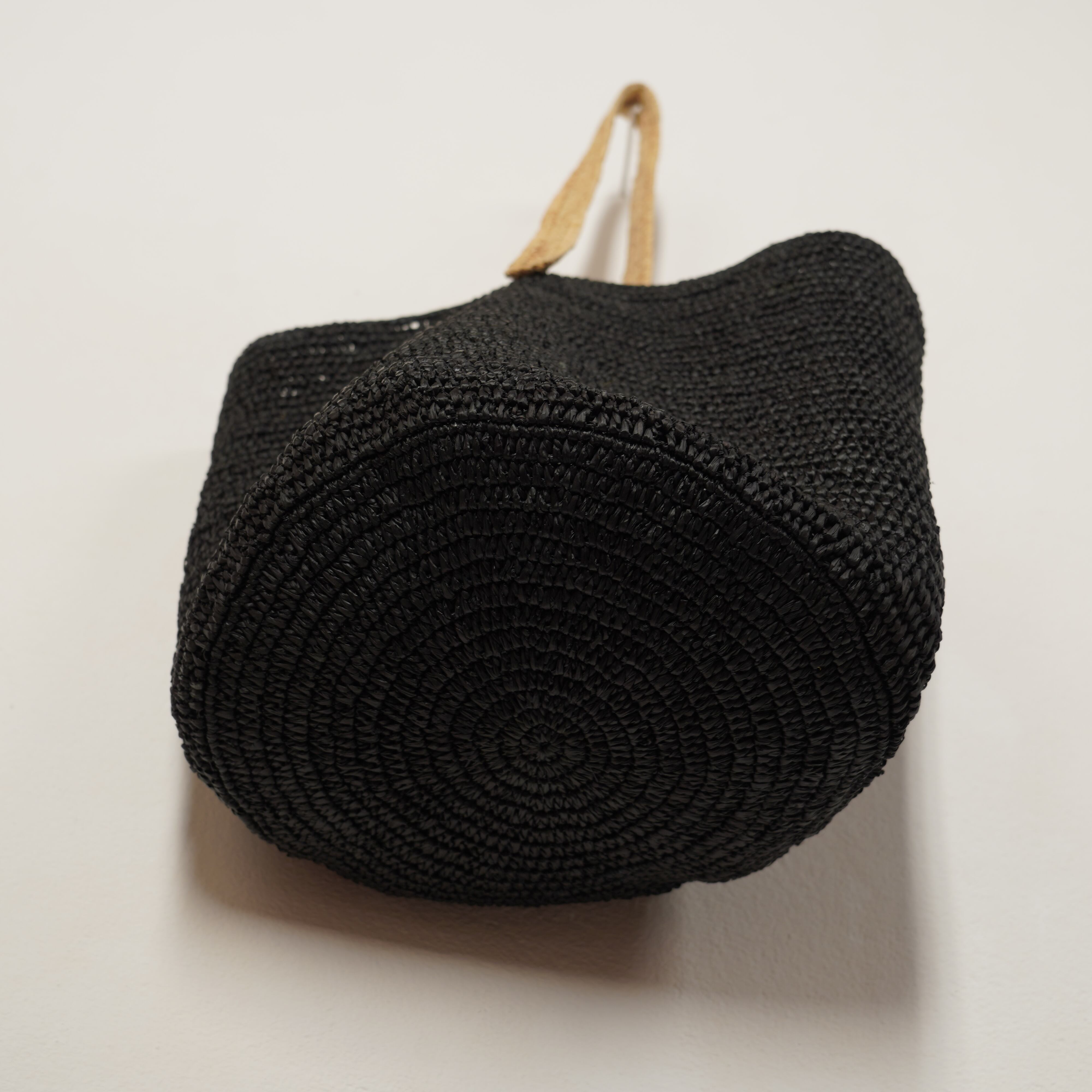 The sophisticated bi-color palette provides the perfect accent to your everyday wardrobe. This piece beautifully merges the soft texture of natural raffia with a modern form, bringing a touch of unique personality to your daily life.