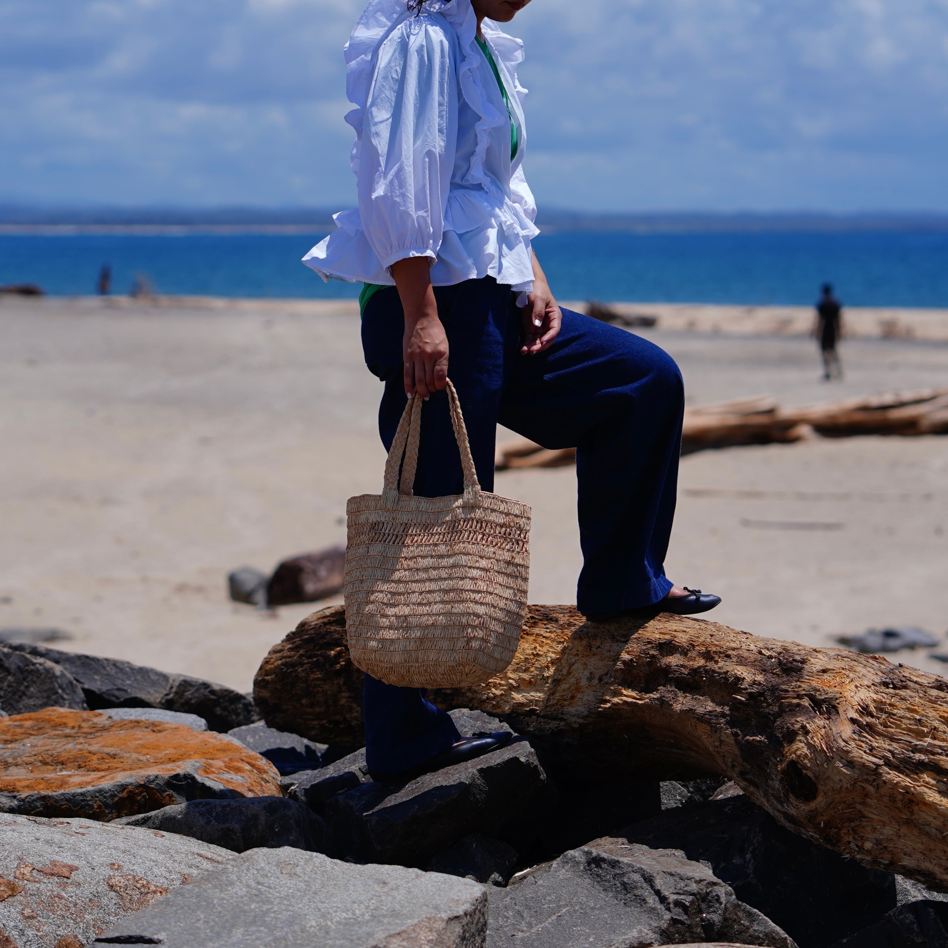 Its charm lies in its versatility; even for those new to raffia bags, it blends so effortlessly into daily outfits that you’ll find yourself reaching for it every morning. This size is perfect for daily use, neatly fitting all your outing essentials. Thanks to the natural lightness of raffia, it remains comfortable to carry without feeling heavy, making your movement feel light and easy in any setting.