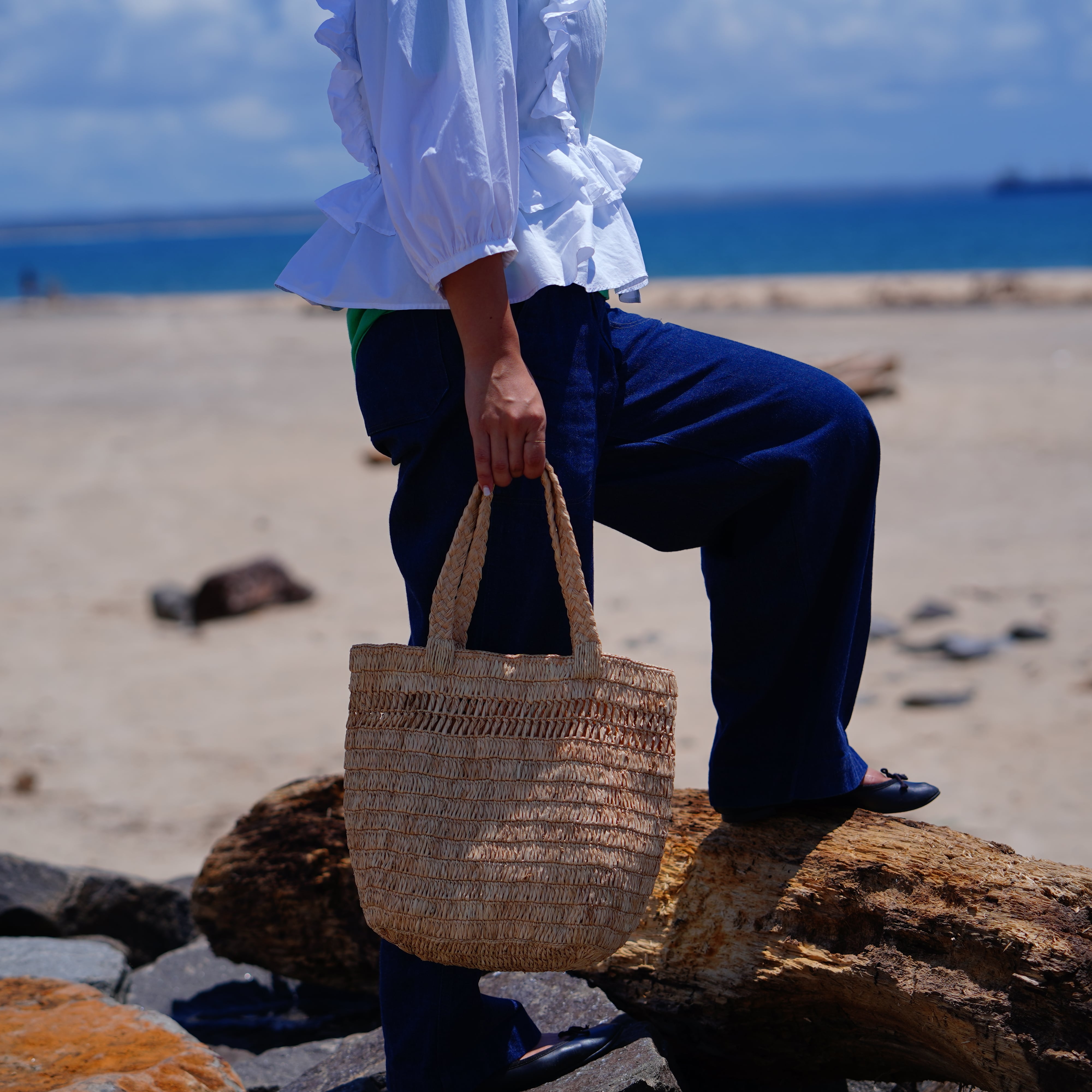 カゴバッグを初めて持つ方でも、ついつい毎日手に取ってしまうような、コーディネートへの馴染みやすさが魅力です。
