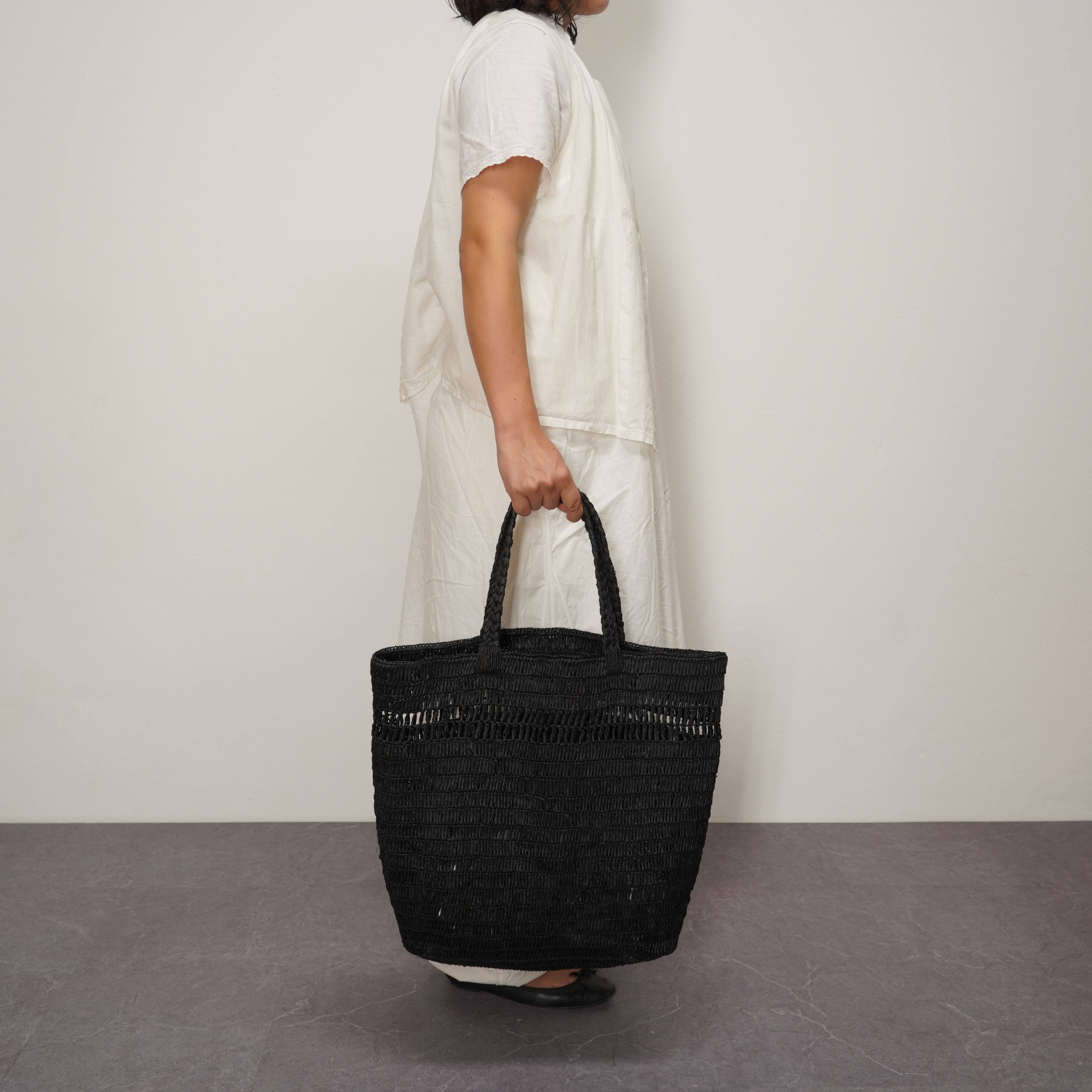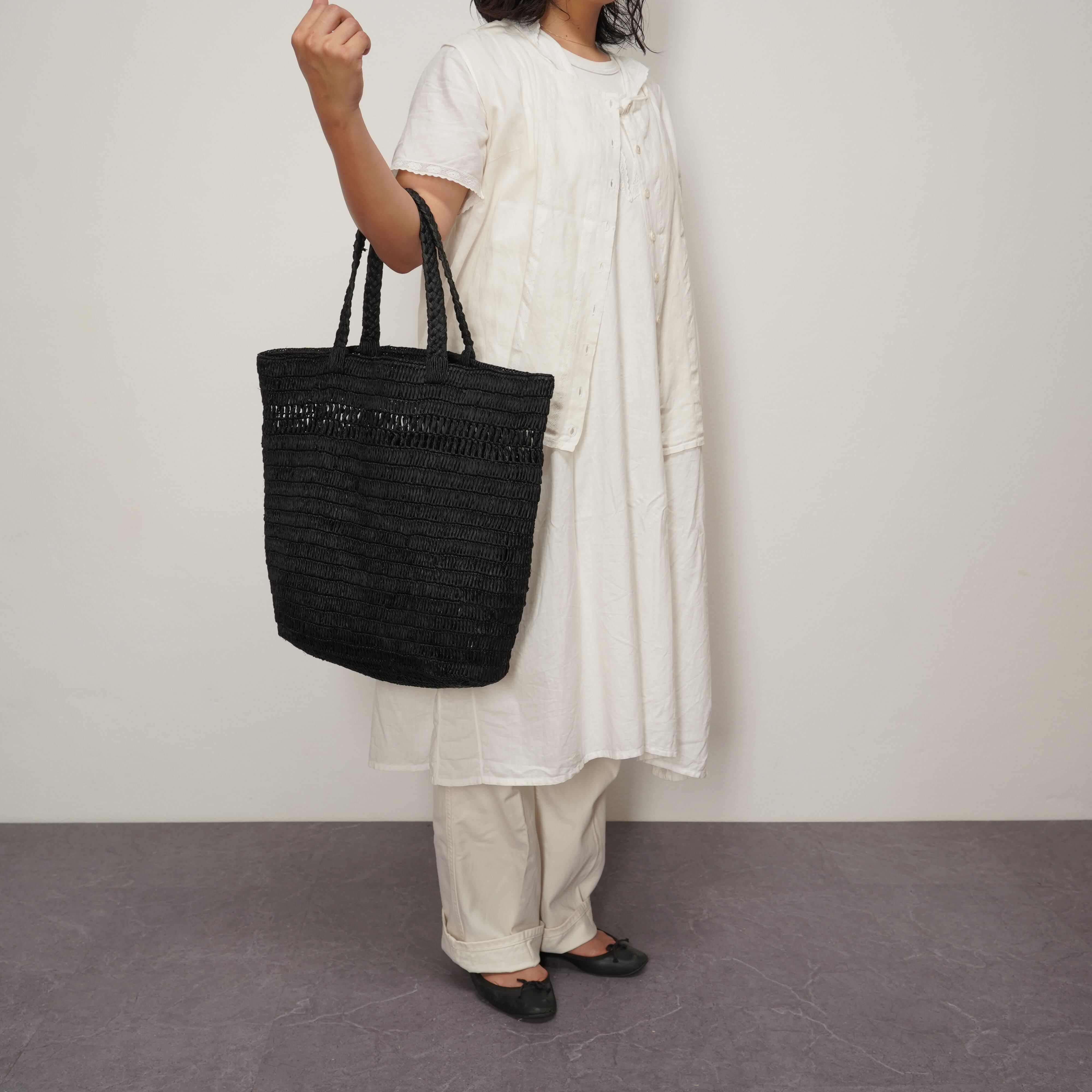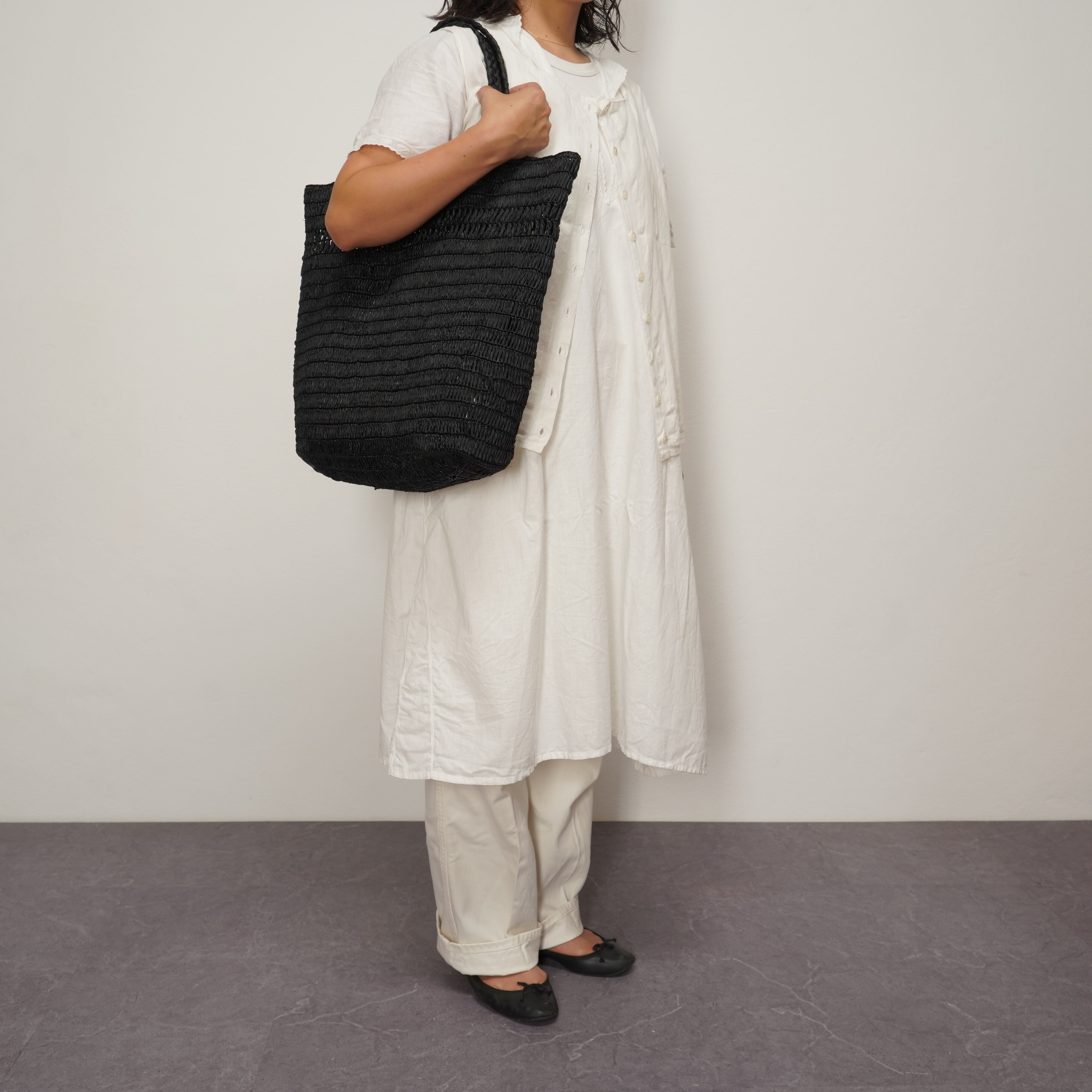 たっぷりと荷物が入る頼もしいサイズ感ながら、ラフィアならではの驚くような軽やかさで、一日中軽快に持ち歩けます。