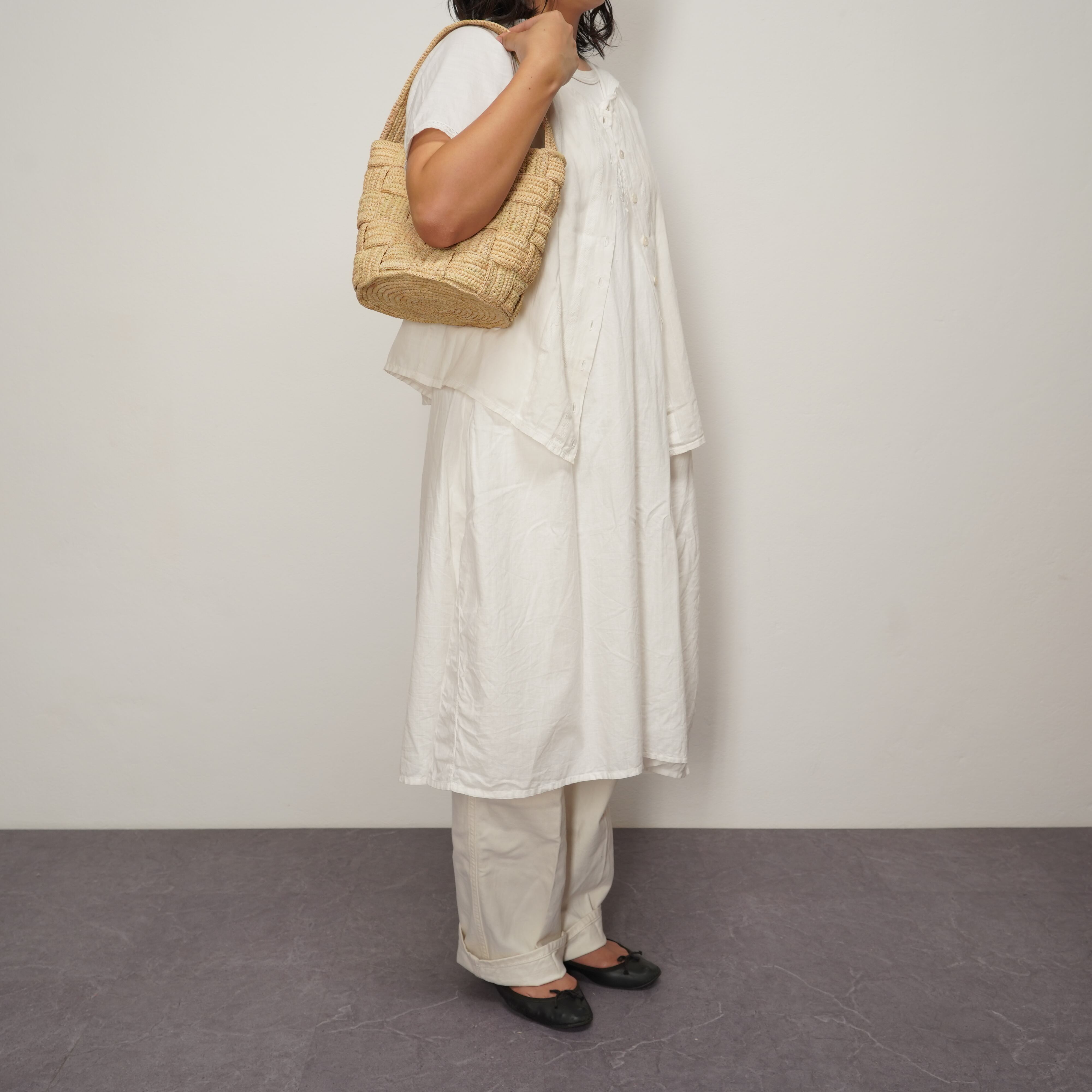 Though compact in appearance, the bag is remarkably sturdy due to its woven structure. Thanks to its generous depth, it offers more storage capacity than meets the eye—making it a dependable companion for your daily essentials.