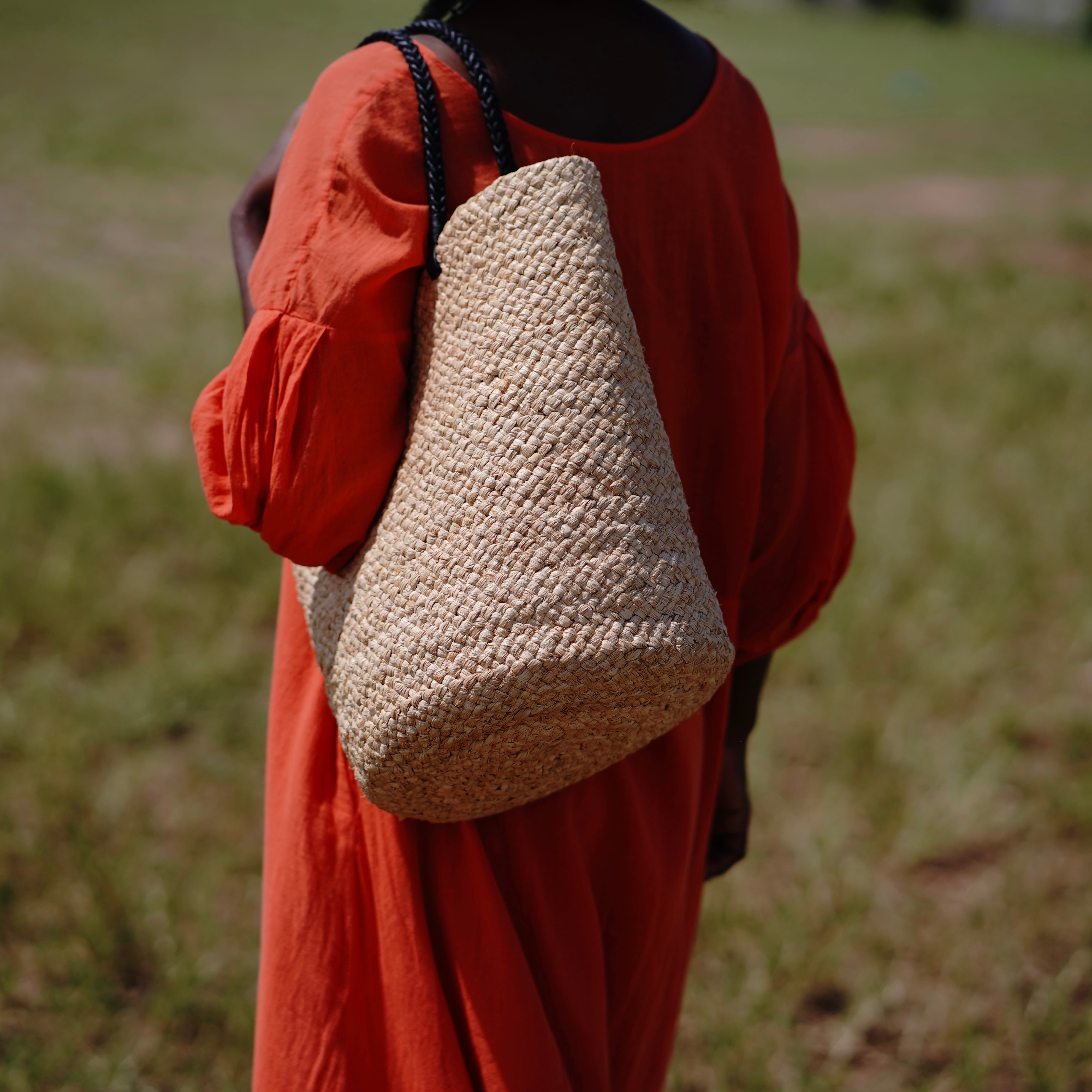 マダガスカルで見つけた、魚釣りに使われるバッグから着想を得て生まれたモデルです。