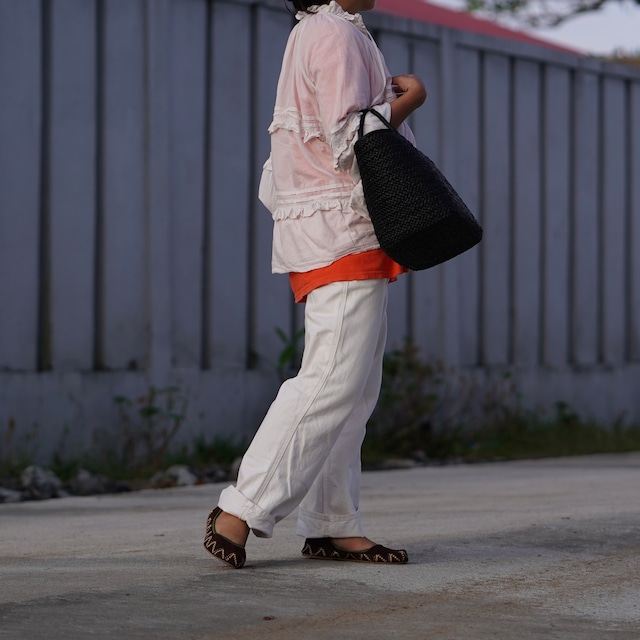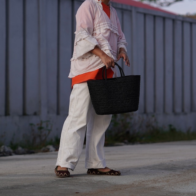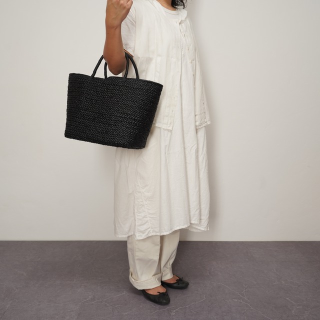 天然素材のナチュラルな風合いはそのままに、ぐっと引き締まった印象に仕上げました。 カジュアルな装いにはもちろん、少しきれいめなスタイルにも馴染む、どんな時でも迷わず手に取れるような万能なバッグです。