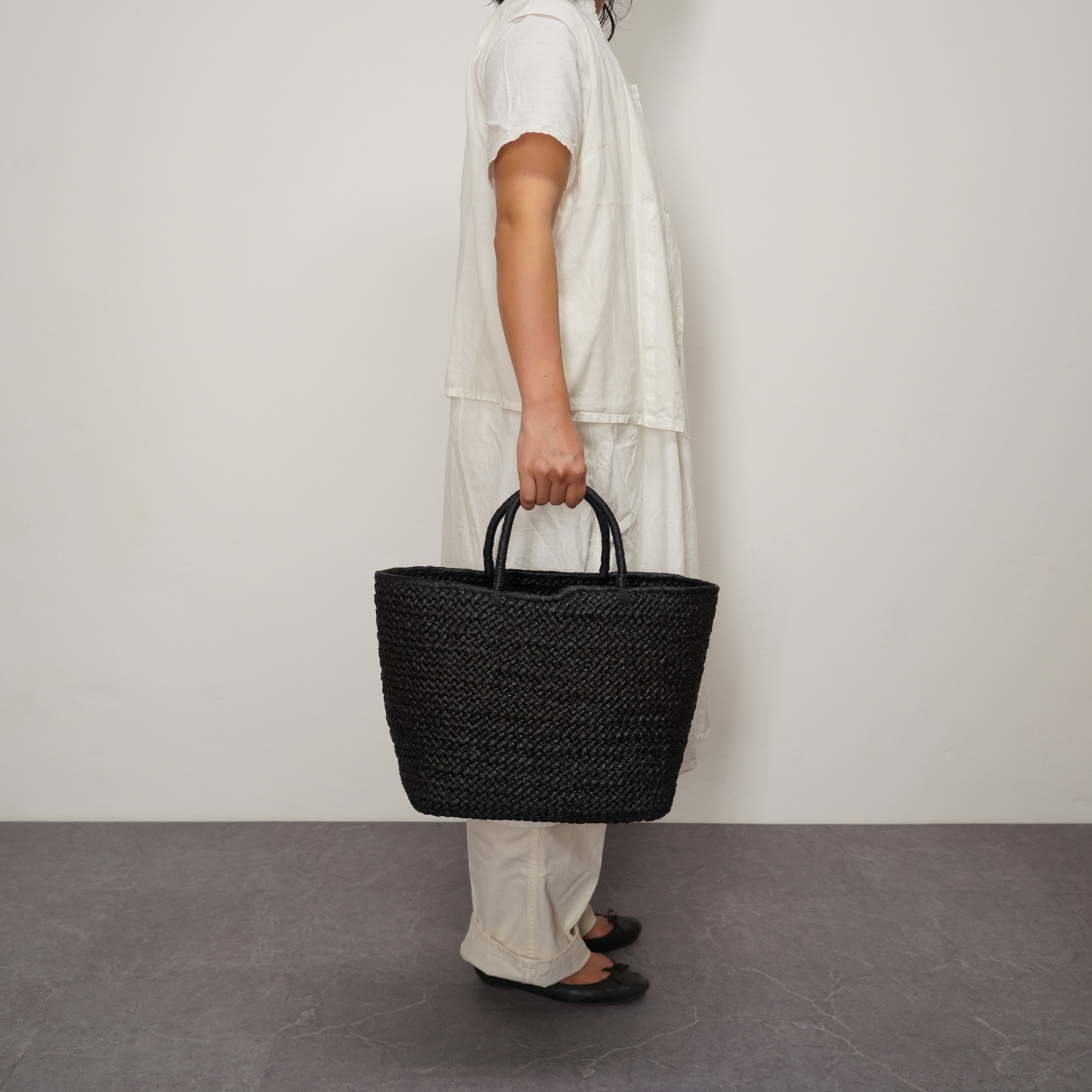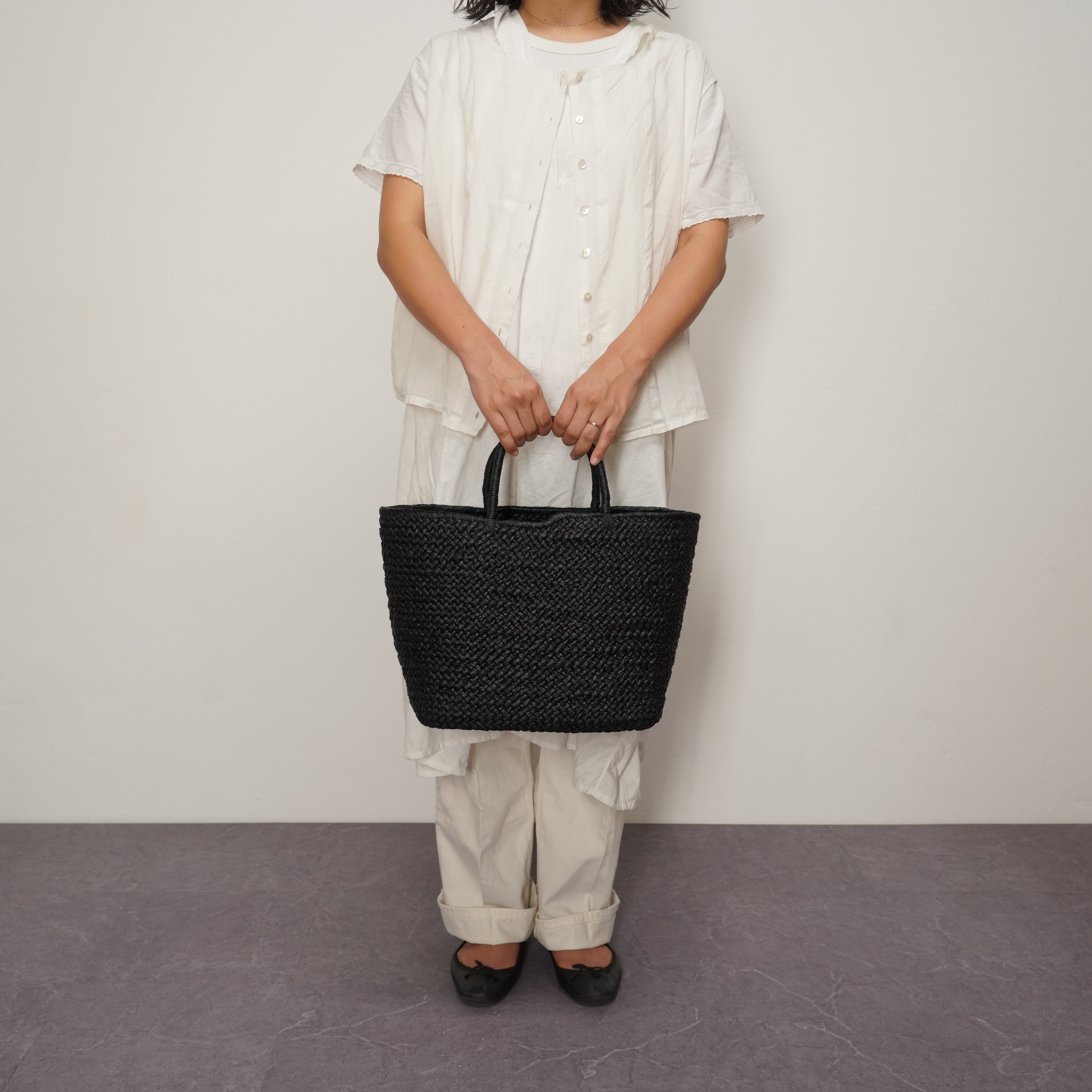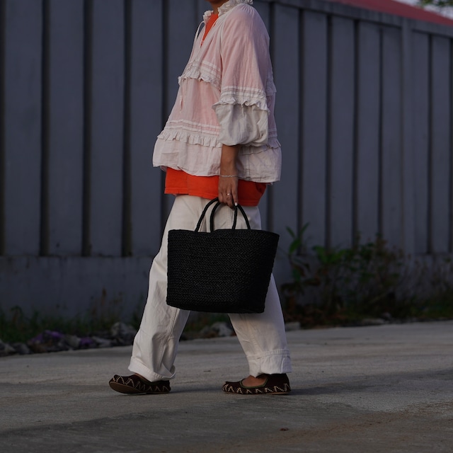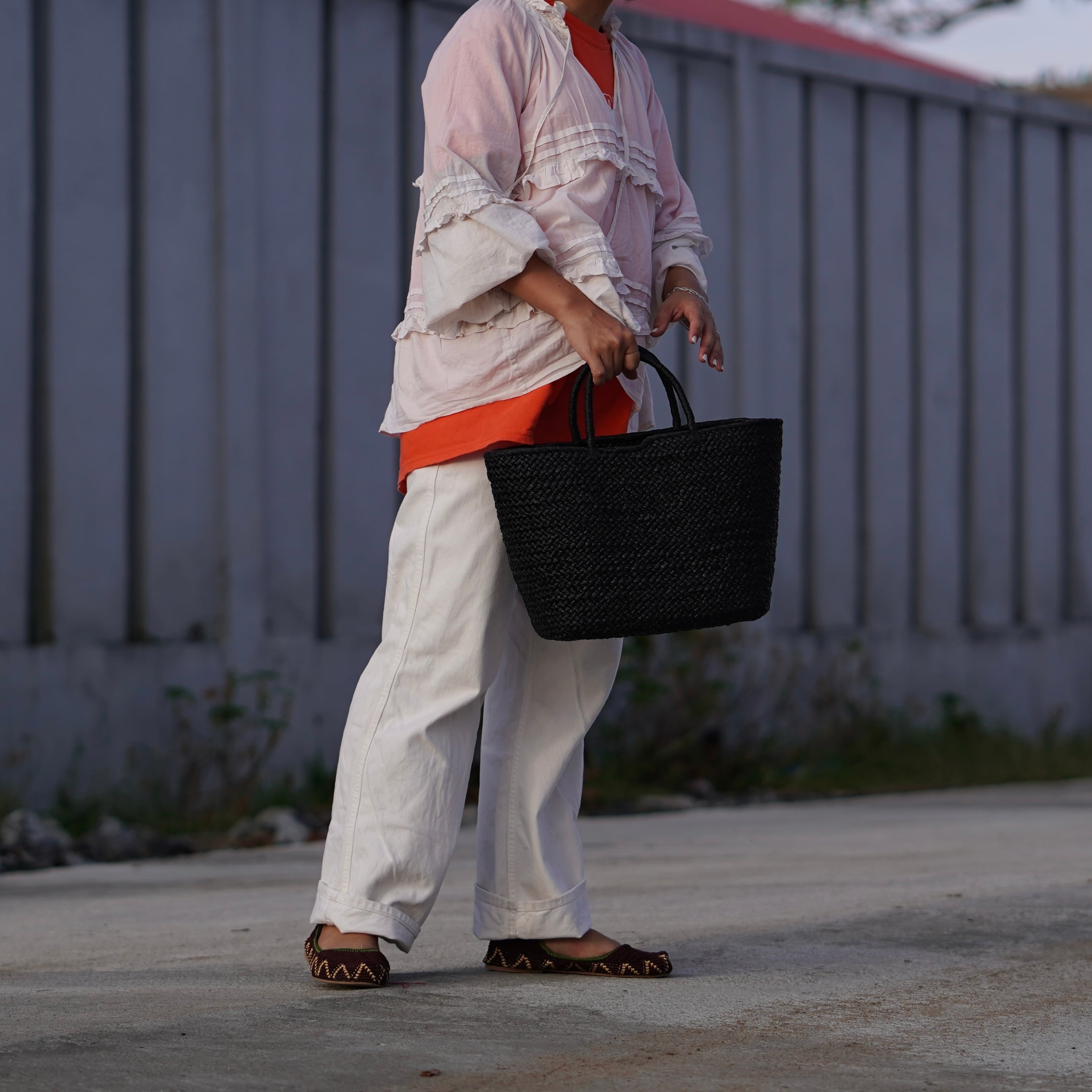 The long-awaited Black color has joined our collection. While preserving the organic texture of natural raffia, the black finish adds a sharp, sophisticated touch to the design. It is a versatile bag that complements everything from casual outfits to more polished styles—the kind of piece you’ll find yourself reaching for every day.