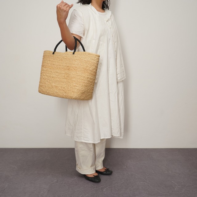 約20Lの容量がありながら、ラフィア素材なのでとても軽量。普段のお買い物やマザーズバッグ、ピクニックなど、荷物が多い日も軽快に持ち歩けます。