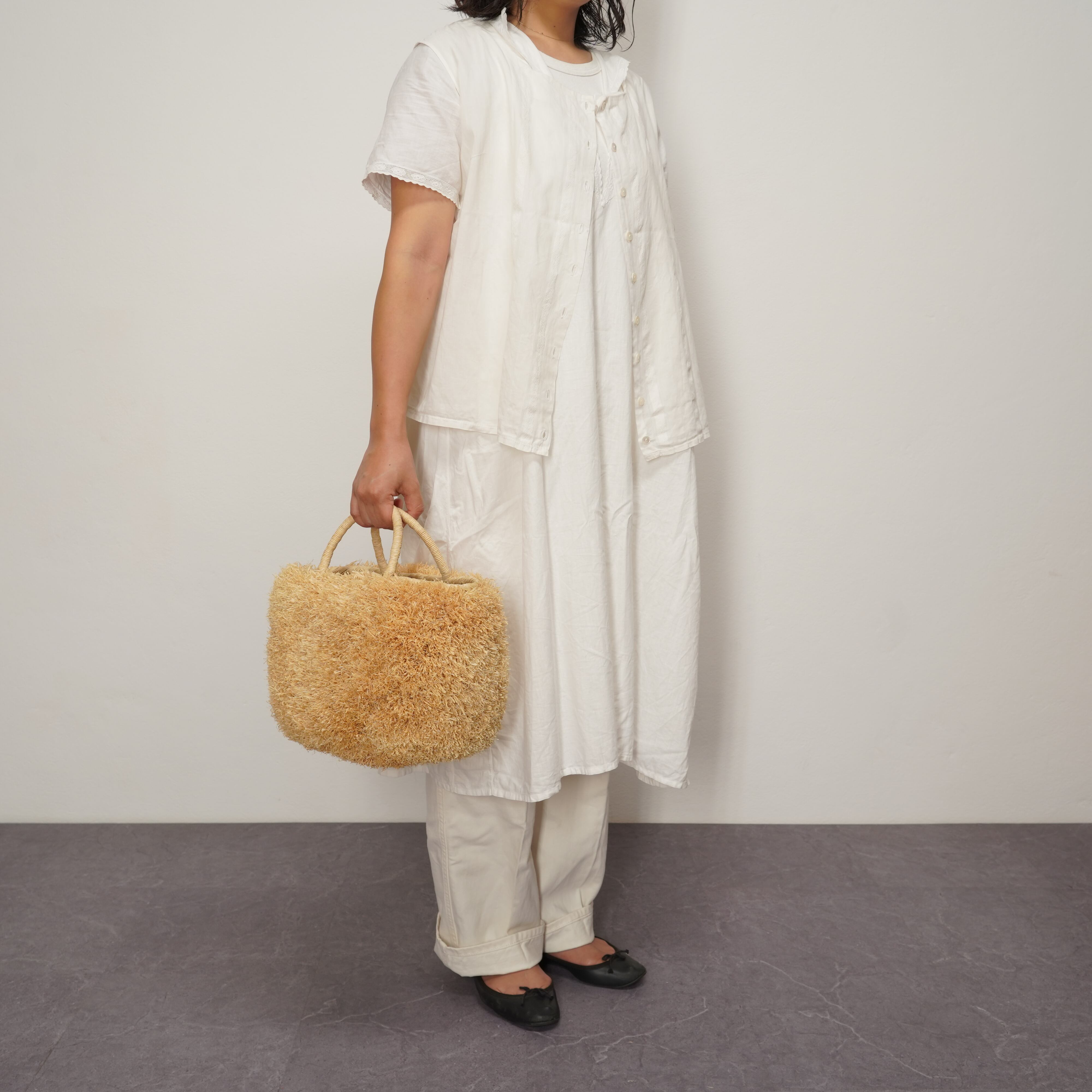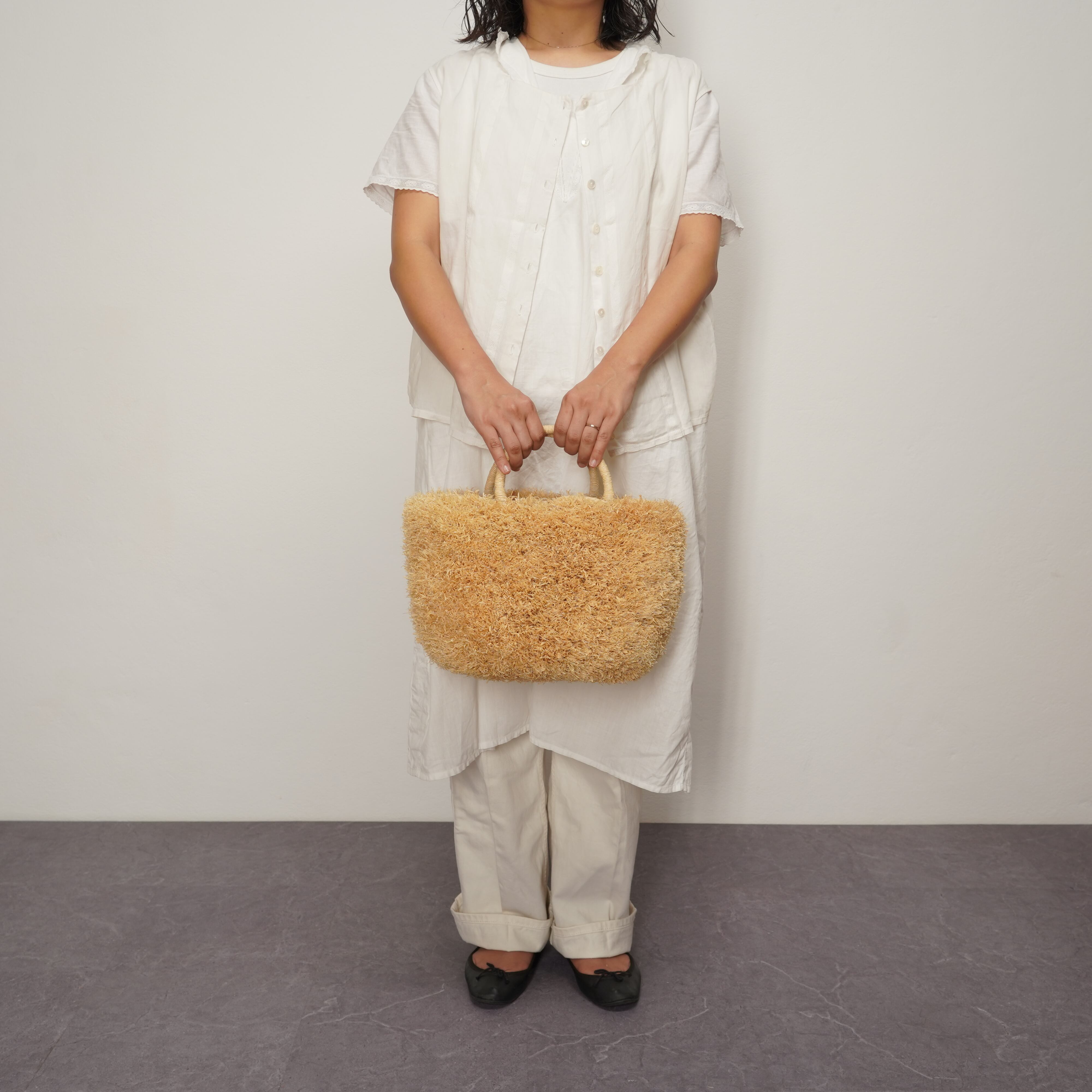 ブランド設立のきっかけとなった思い入れのあるモデルに、たっぷりとフリンジを施しました。 職人が一つひとつ、約1週間という時間をかけて丁寧に編み上げています。手仕事の温もりが伝わる、特別な仕上がりをお楽しみください。
