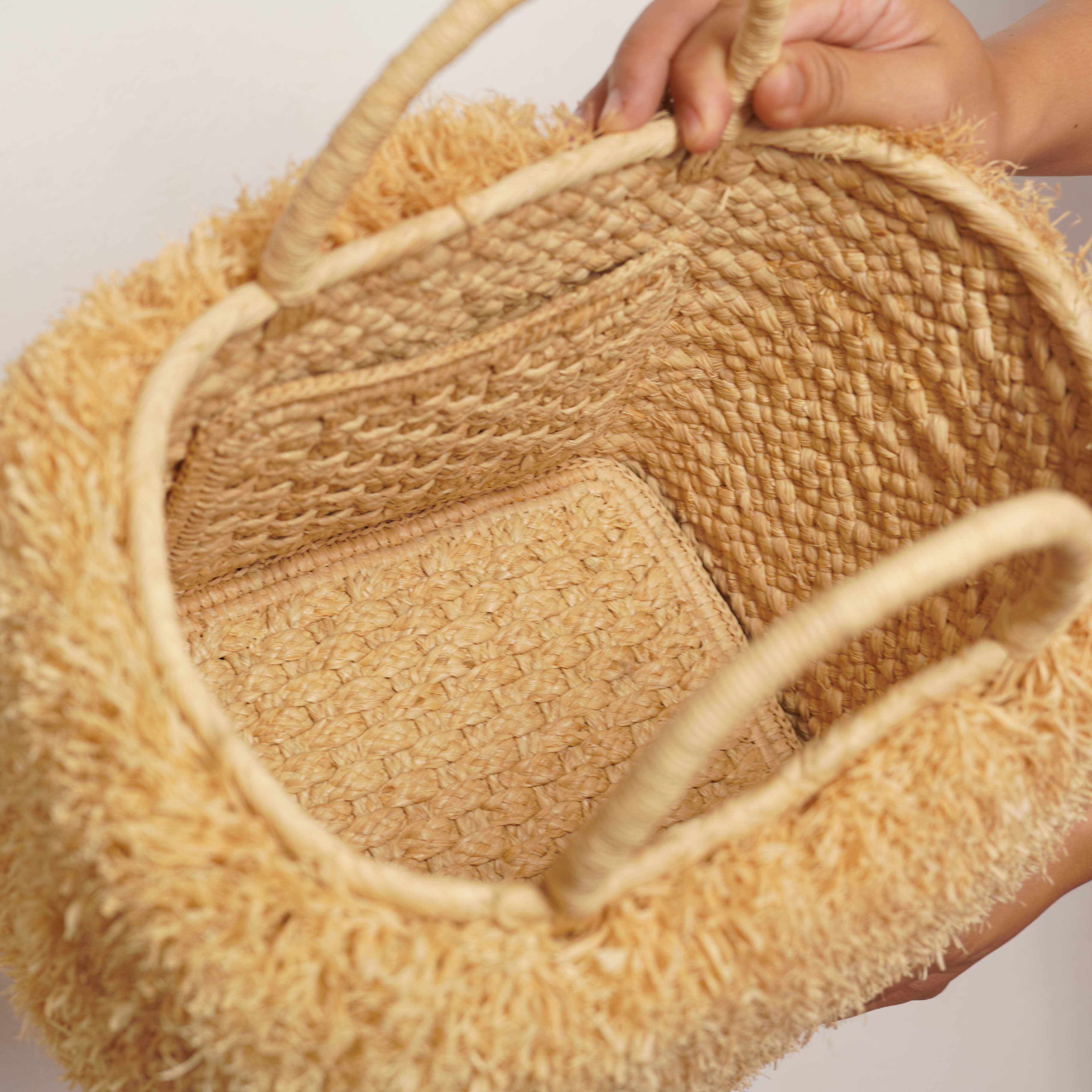 The origin of AMPIANA. This bag marks the beginning of our story. Inspired by the traditional baskets found in almost every home in Madagascar, we have updated the materials and details to fit modern life while preserving its timeless beauty.